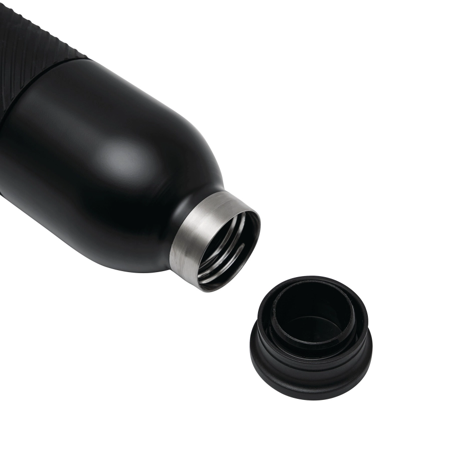 Próżniowa butelka termiczna VACUGRIP, z podwójną izolacją: wewnątrz i na zewnątrz wykonana jest ze stali nierdzewnej. Posiada dopasowaną kolorystycznie plastikową pokrywkę z bezpieczną zakrętką. Silikonowa powłoka zapewnia optymalny chwyt. Pojemność butelki to ok. 600 ml. Utrzymuje ciepło przez ok. 8 godzin, a zimno nawet do 12.
