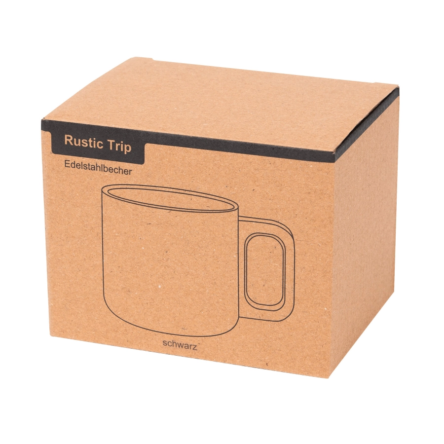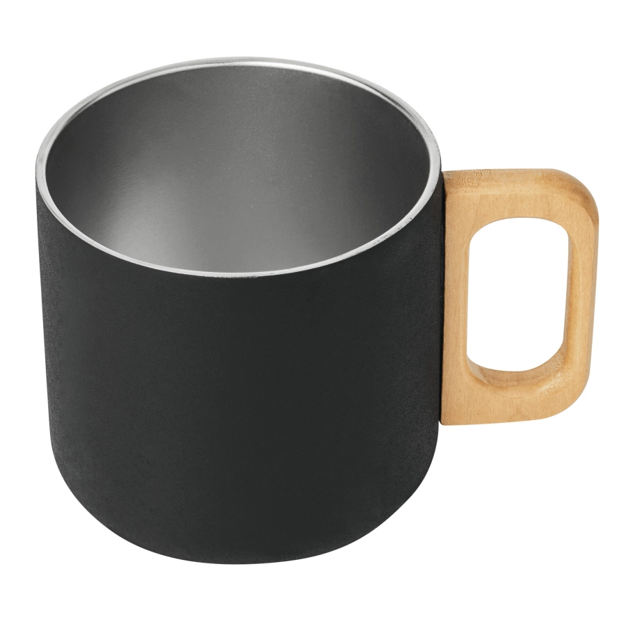 Kubek ze stali nierdzewnej RUSTIC TRIP, z podwójną izolacją. Posiada drewniany uchwyt, kolorową matowa powłokę proszkową na zewnątrz i srebrną wewnątrz. Pojemność kubka to ok. 350 ml.