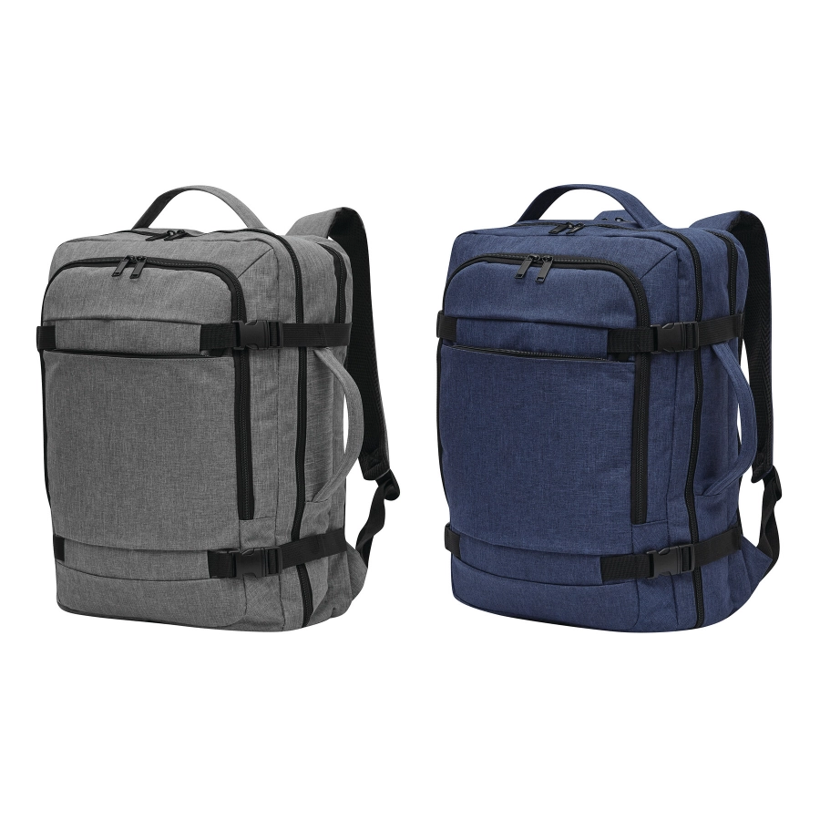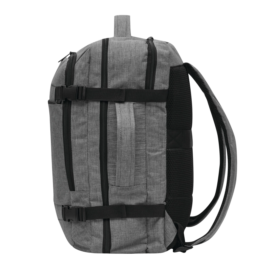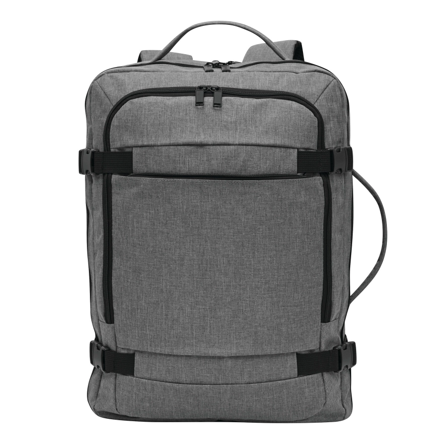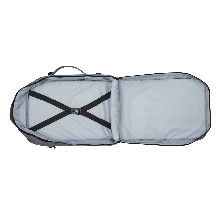 Plecak STEWARD posiada 2 przednie komory zapinane na zamek w tym jedną z organizerem (3 wsuwane kieszenie, 2 pętle na długopisy), 1 dużą wyściełaną komorę główną z paskiem do pakowania oraz 1 miękką komorę na laptopa – obie zapinane na zamek błyskawiczny. Dla wygody posiada też wzmocnione uchwyty (górny i boczny), wyściełane ergonomiczne szelki i plecy z paskiem do montażu na uchwyt walizki oraz 2 paski kompresyjne z zatrzaskami po każdej stronie.