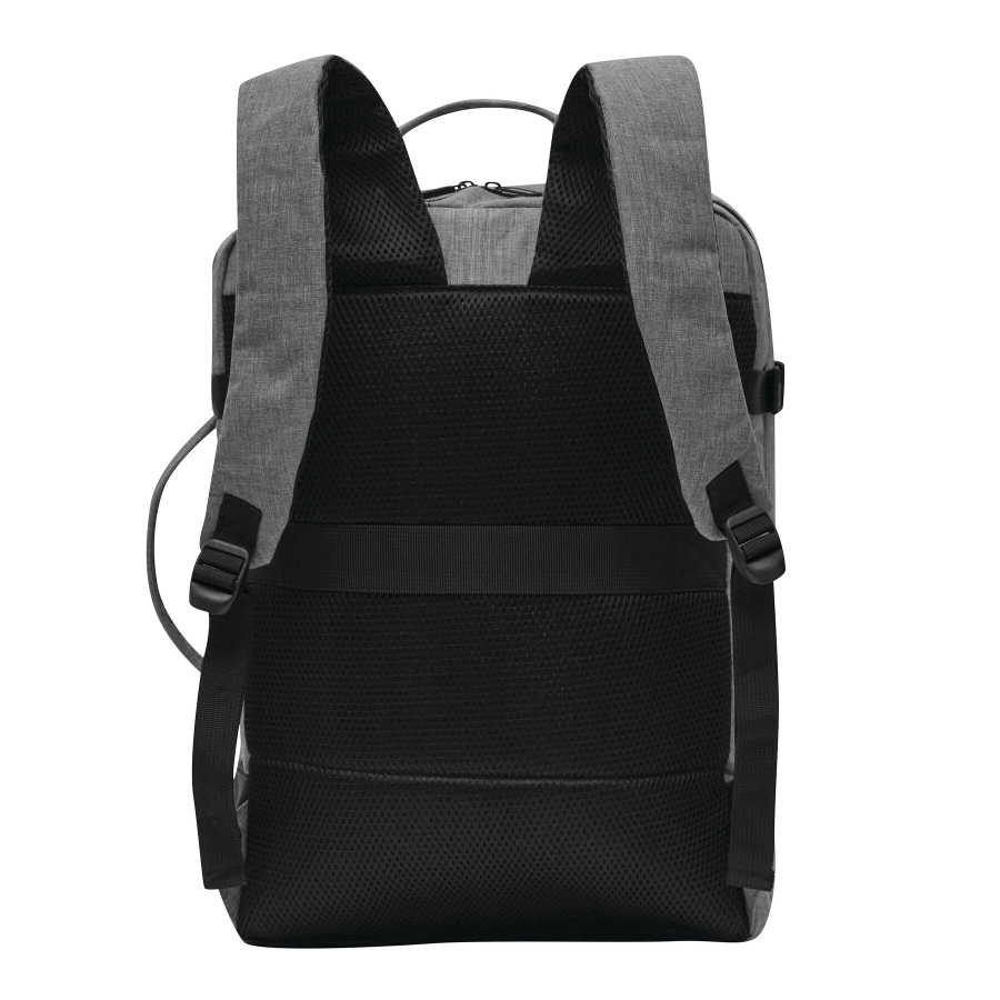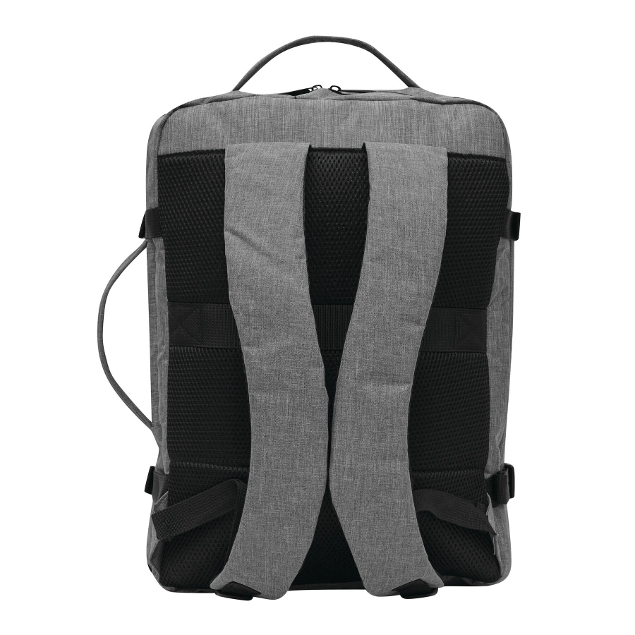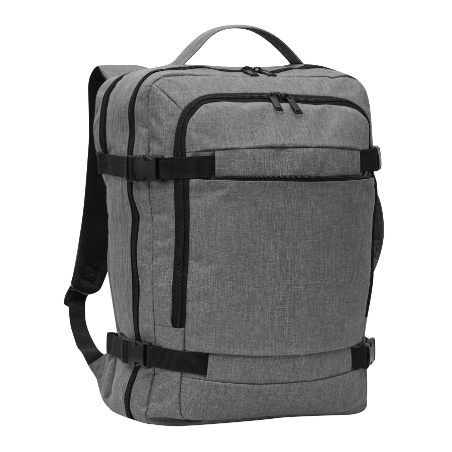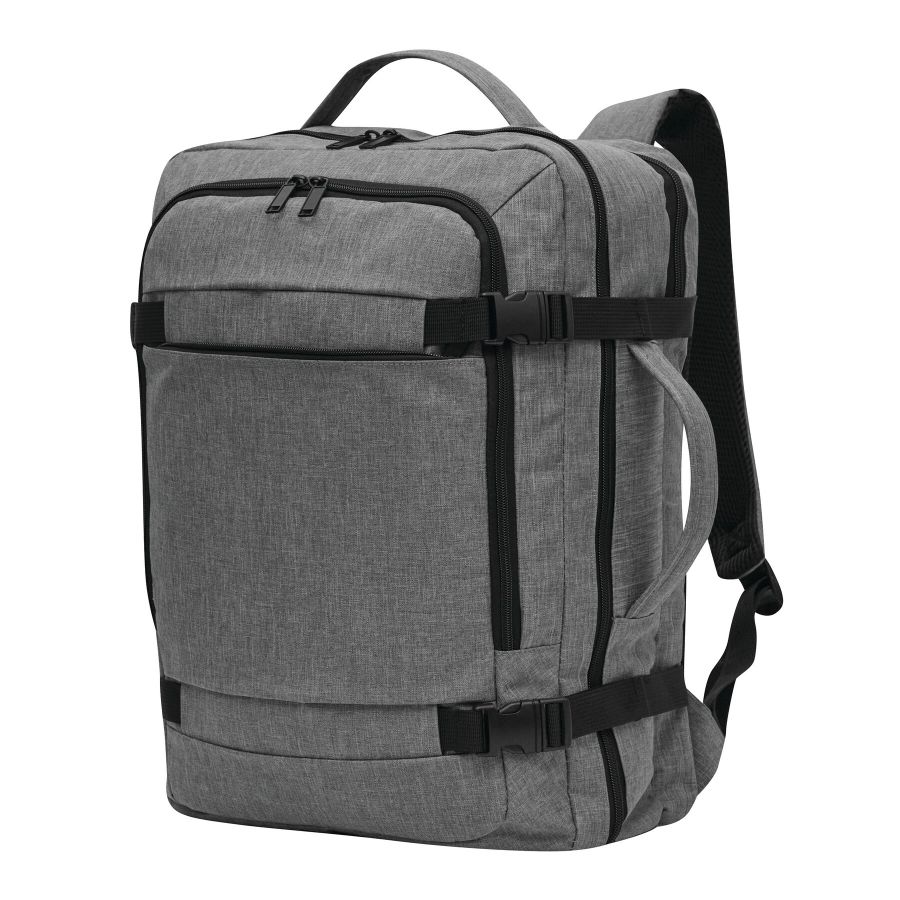 Plecak STEWARD posiada 2 przednie komory zapinane na zamek w tym jedną z organizerem (3 wsuwane kieszenie, 2 pętle na długopisy), 1 dużą wyściełaną komorę główną z paskiem do pakowania oraz 1 miękką komorę na laptopa – obie zapinane na zamek błyskawiczny. Dla wygody posiada też wzmocnione uchwyty (górny i boczny), wyściełane ergonomiczne szelki i plecy z paskiem do montażu na uchwyt walizki oraz 2 paski kompresyjne z zatrzaskami po każdej stronie.