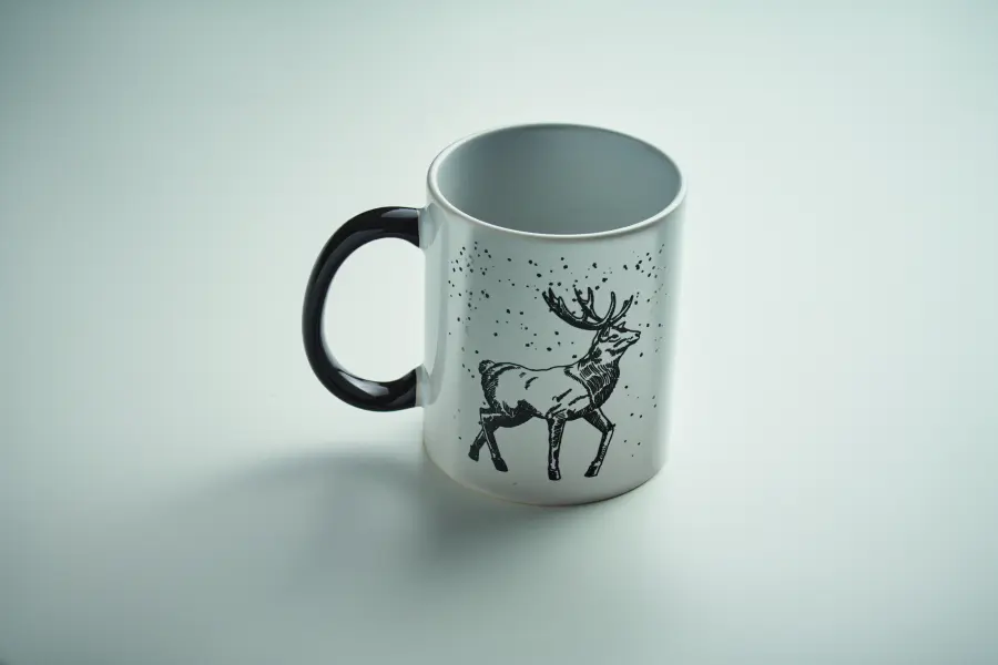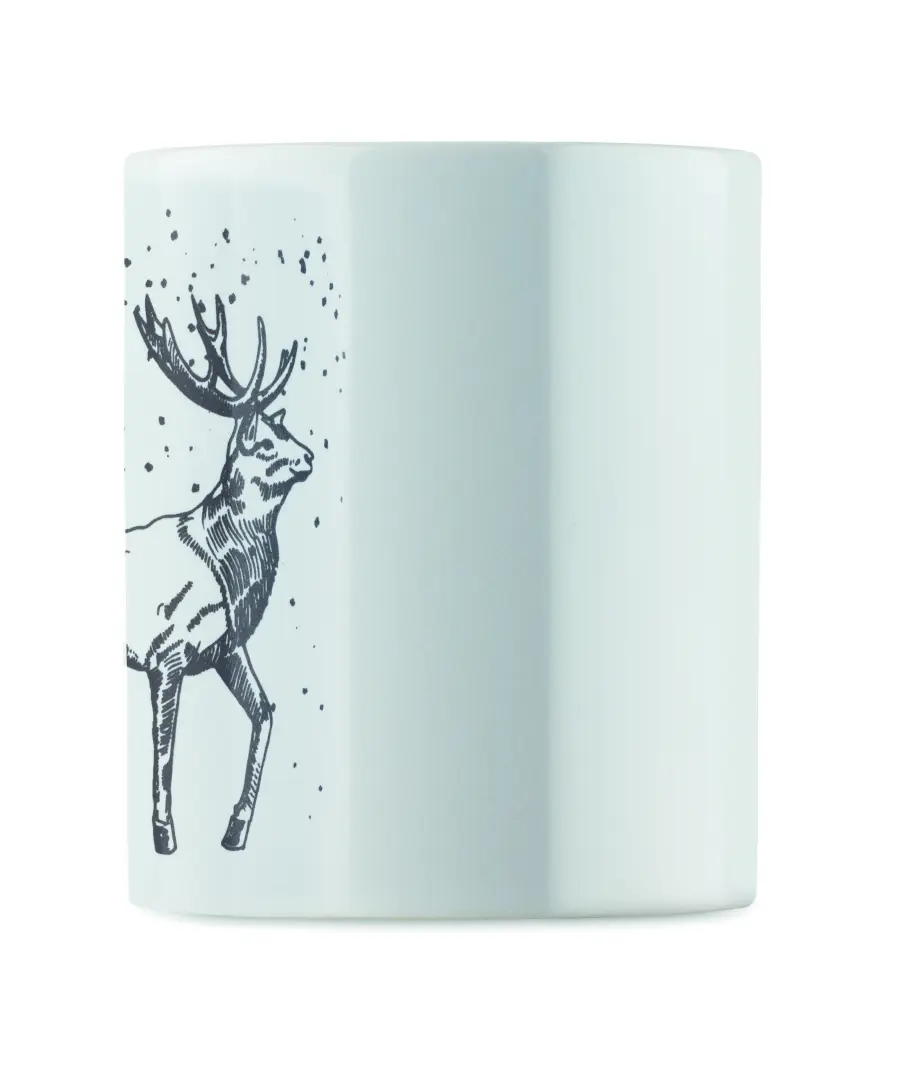 Kubek ceramiczny z sezonowym wzorem. Indywidualne opakowanie w pasującym kartonowym pudełku upominkowym. Pojemność: 300 ml.