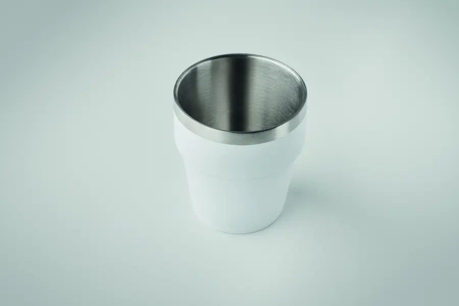 Kubek z podwójnymi ściankami ze stali nierdzewnej pochodzącej z recyklingu (90% stali nierdzewnej pochodzącej z recyklingu i 10% stali nierdzewnej). Pojemność: 250 ml.