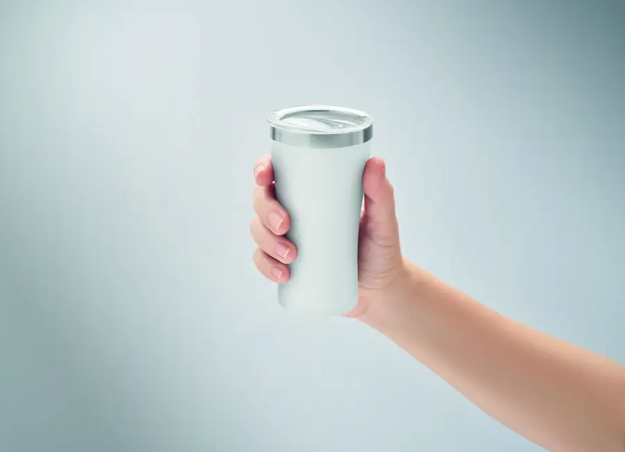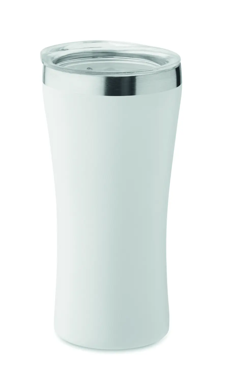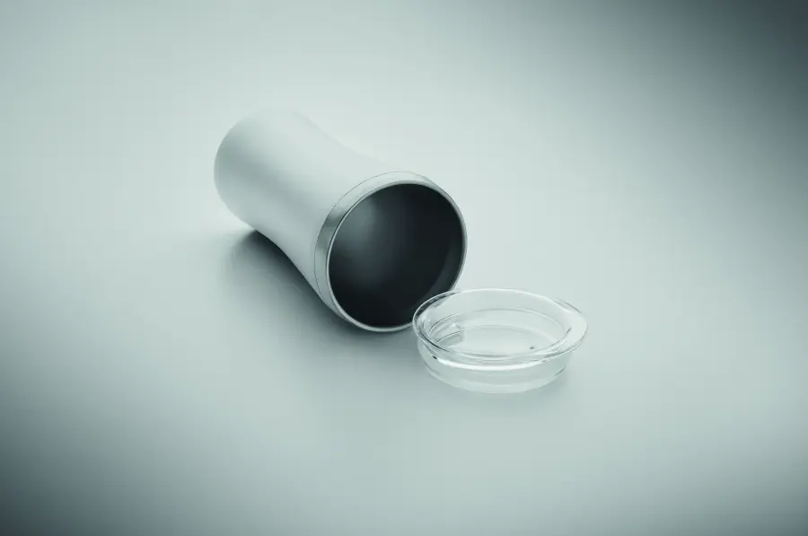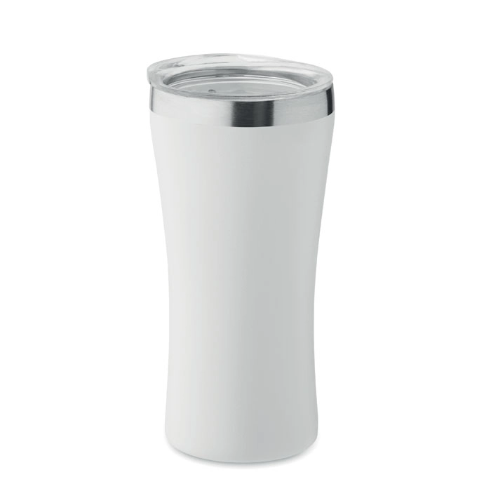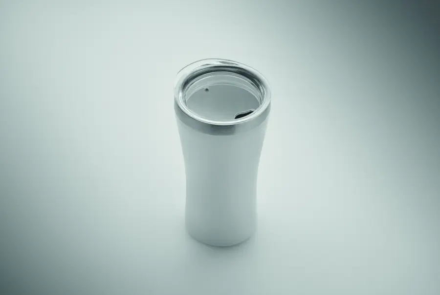 Mały kubek o podwójnych ściankach izolowanych próżniowo, wykonany ze stali nierdzewnej z recyklingu (90% stali nierdzewnej z recyklingu i 10% stali nierdzewnej), z zakrętką z otworem do picia z przezroczystego PP. Pojemność: 160 ml.