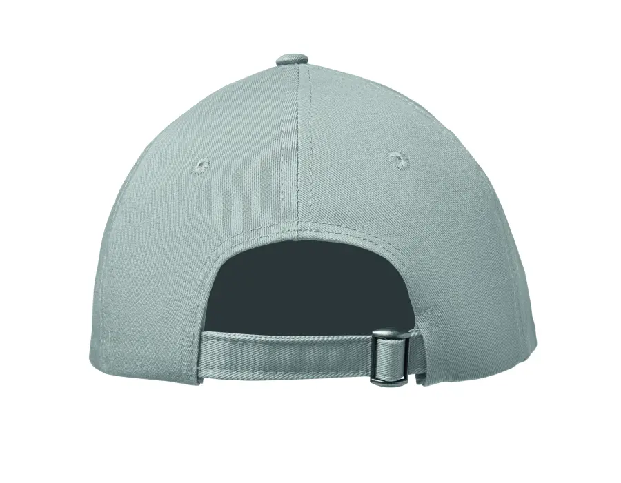 6-panelowa czapka z daszkiem z bawełnianego twillu 280 gr/m² z regulowanym paskiem i stalowym zapięciem. Daszek typu Oxford. Nadająca się do prania. Rozmiar 7 1/4.