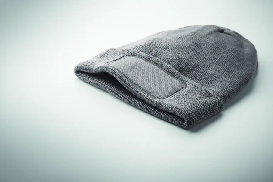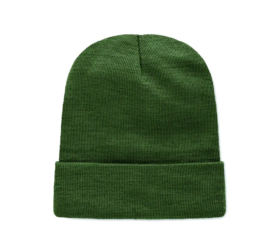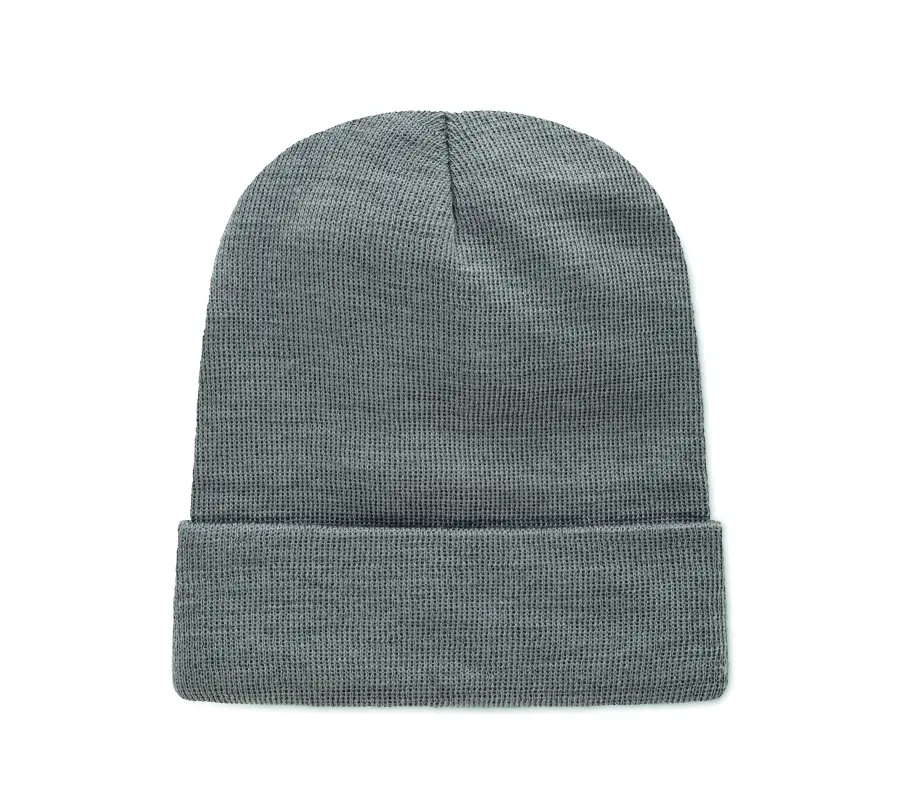 Dzianinowa czapka unisex z miękkiego, rozciągliwego poliestru RPET z mankietem i naszywką.