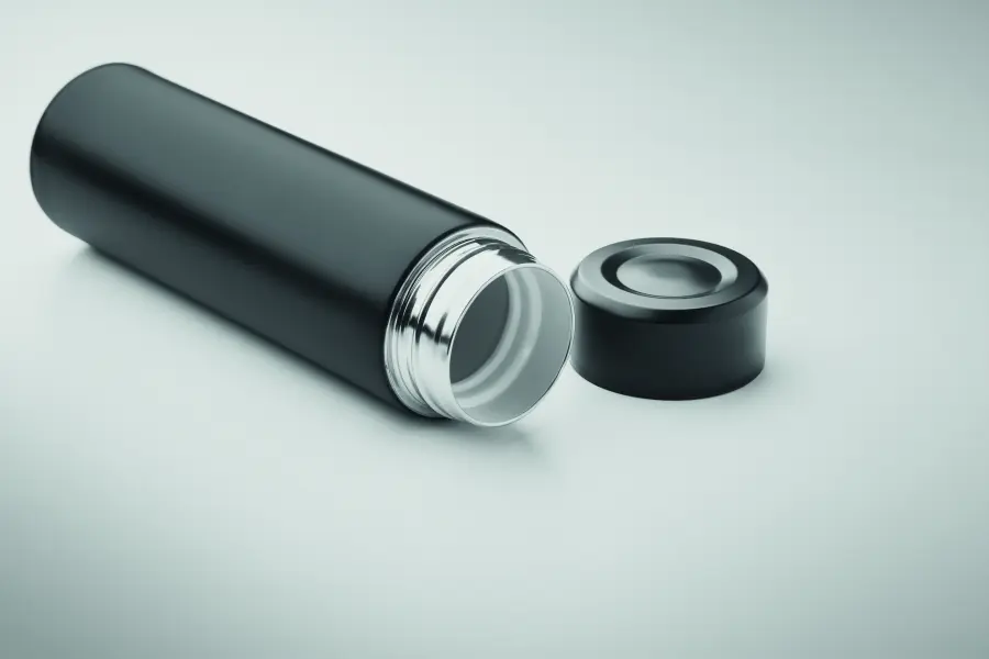 Dwuścienna butelka z izolacją próżniową z recyklingowanej stali nierdzewnej (90% z recyklingowanej stali nierdzewnej i 10% ze stali nierdzewnej) z ceramiczną warstwą wewnętrzną. Pojemność: 420 ml.