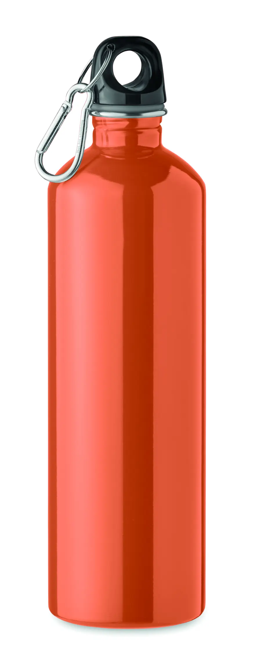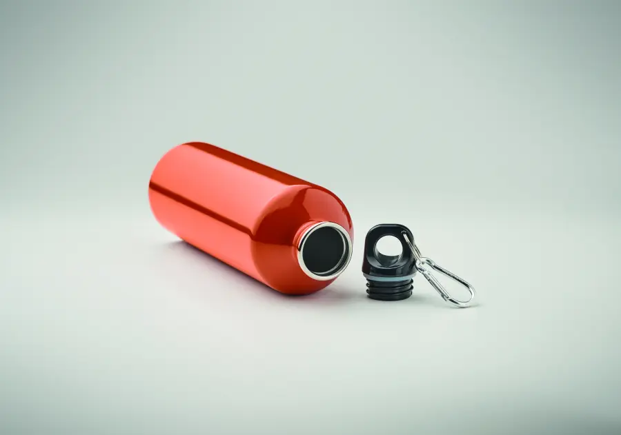 Jednościenna butelka z recyklingowanej stali nierdzewnej (90% stali nierdzewnej z recyklingu i 10% stali nierdzewnej) z karabińczykiem. Pojemność: 750 ml. Karabińczyk nie jest przeznaczony do wspinaczki (nie służy do użytku profesjonalnego). Nadruk sublimacyjny dostępny tylko w kolorze białym. Szczelna. Ponieważ jest to butelka z pojedynczą ścianką, może dochodzić do wymiany ciepła.