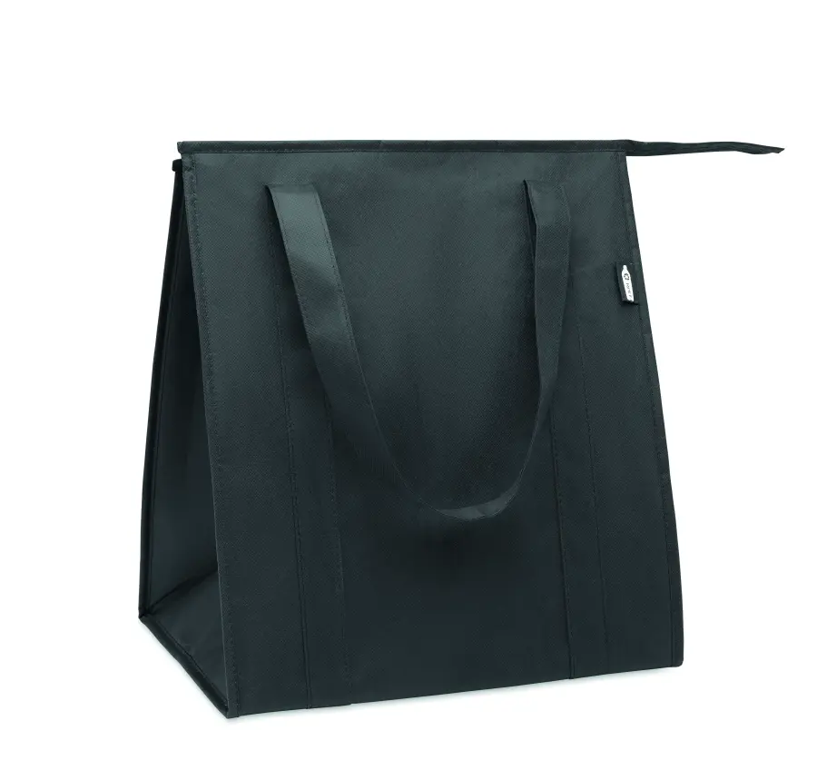 Torba chłodząca z włókniny RPET 80gr/m². Materiał izolacyjny: folia aluminiowa. Pojemność 25 l. Główna komora z zamkiem błyskawicznym na górze.