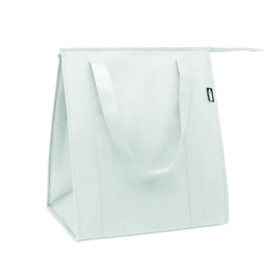 Torba chłodząca z włókniny RPET 80gr/m². Materiał izolacyjny: folia aluminiowa. Pojemność 25 l. Główna komora z zamkiem błyskawicznym na górze.
