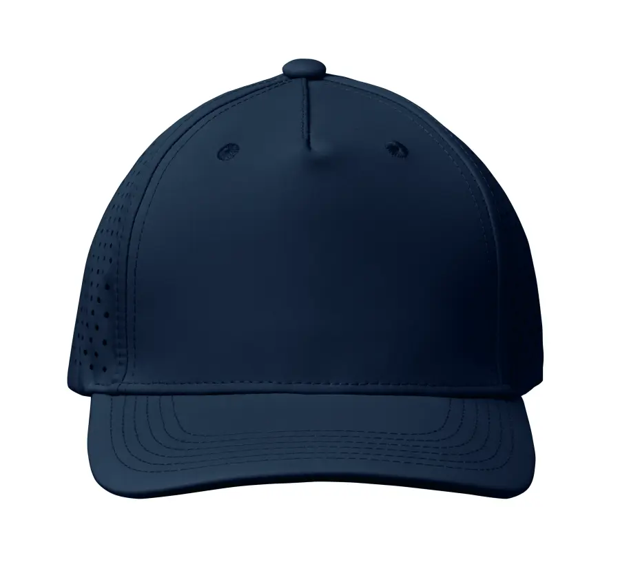 5-panelowa czapka z poliestru z regulowanym zapięciem na rzep i laserowo perforowanymi otworami z 2 obszytymi oczkami w dopasowanym kolorze. Produkt jest szybkoschnący, odporny na pot i wodę. 130 gr/m²