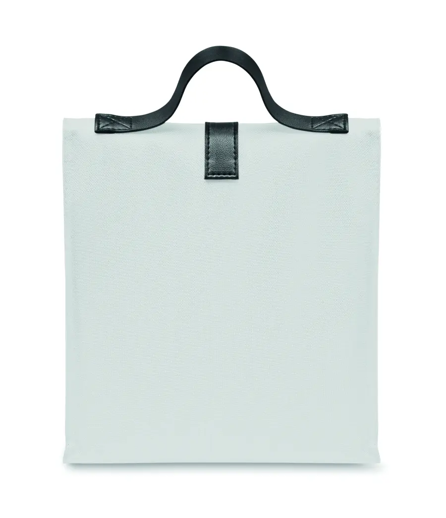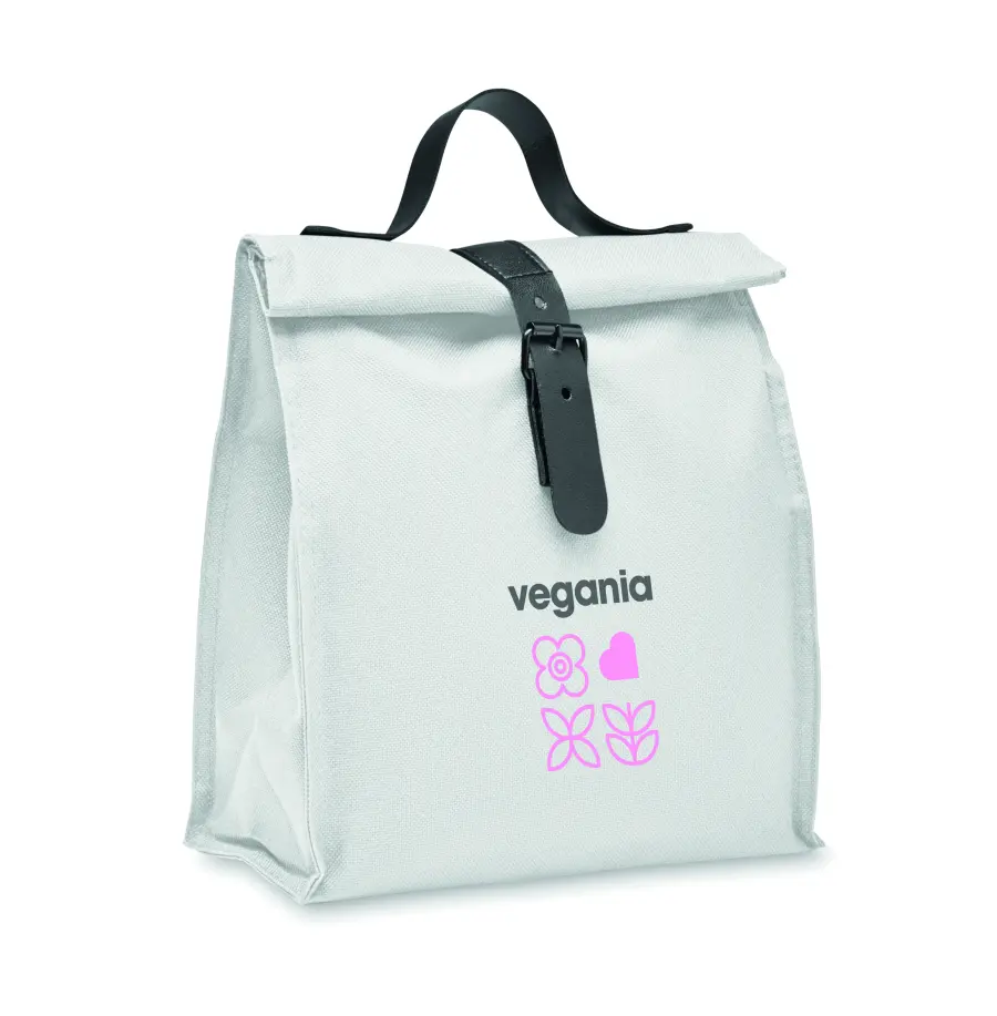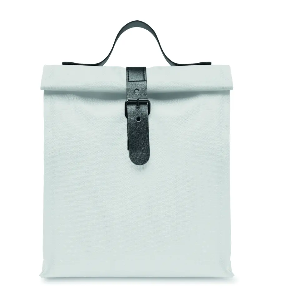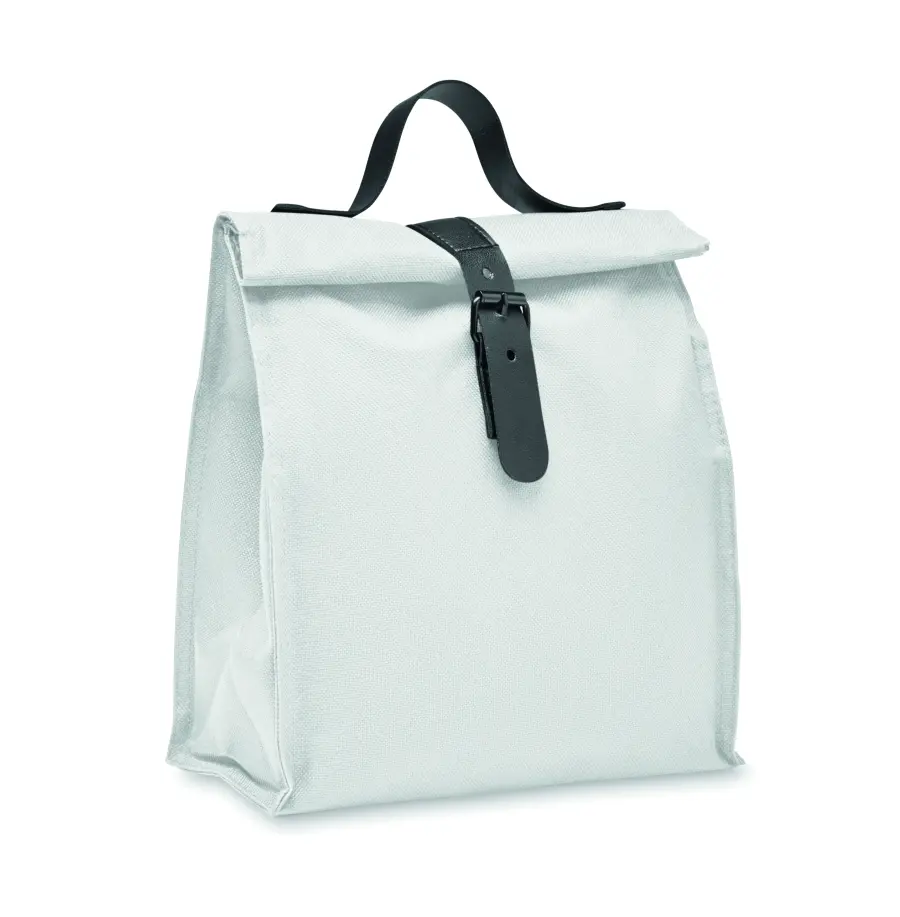 Izolowana torba na lunch z poliestru 600D RPET z uchwytem i zamknięciem z PU. Izolacja: 3 mm pianka PE z PEVA.