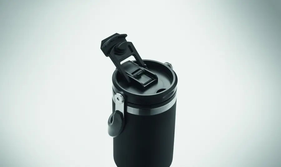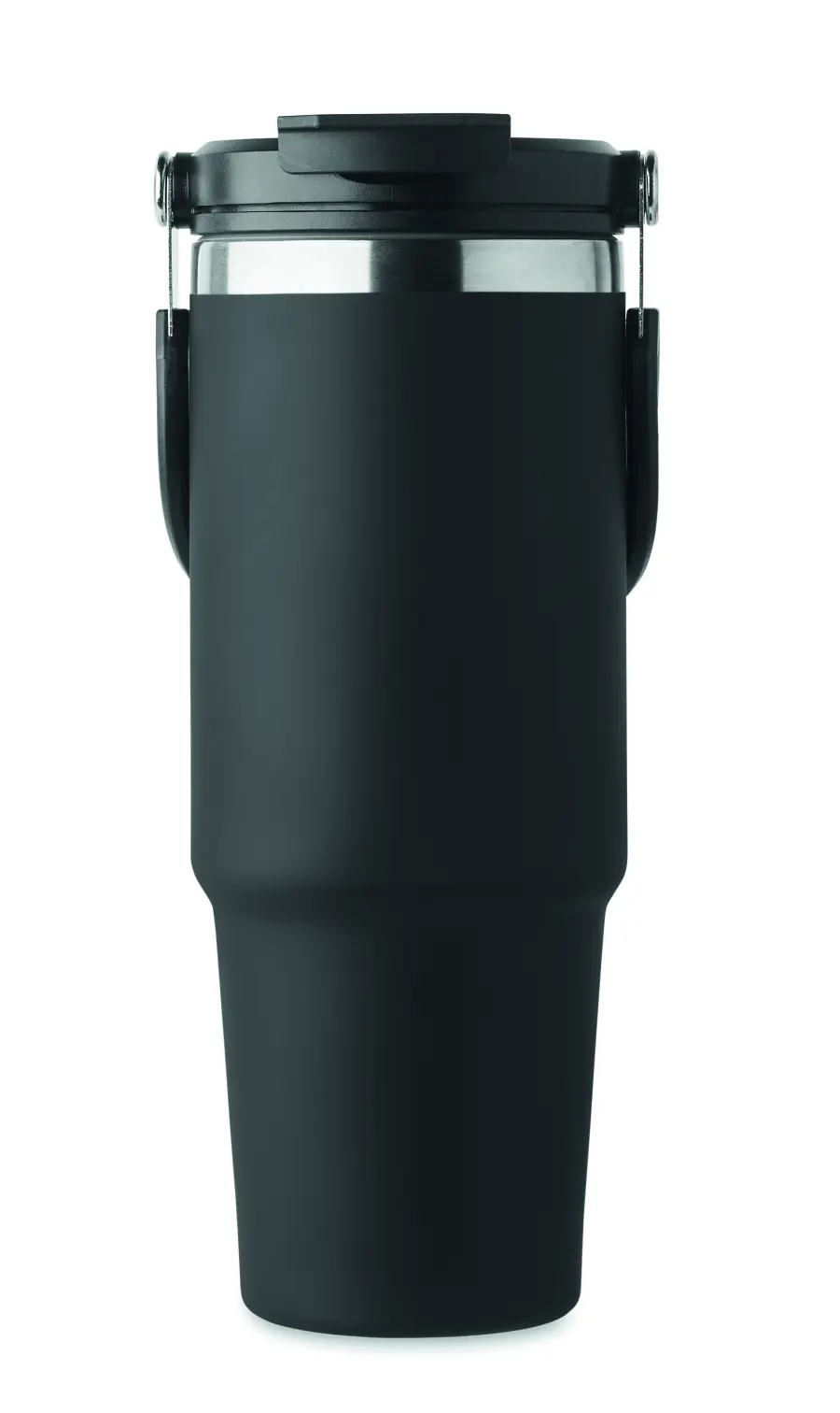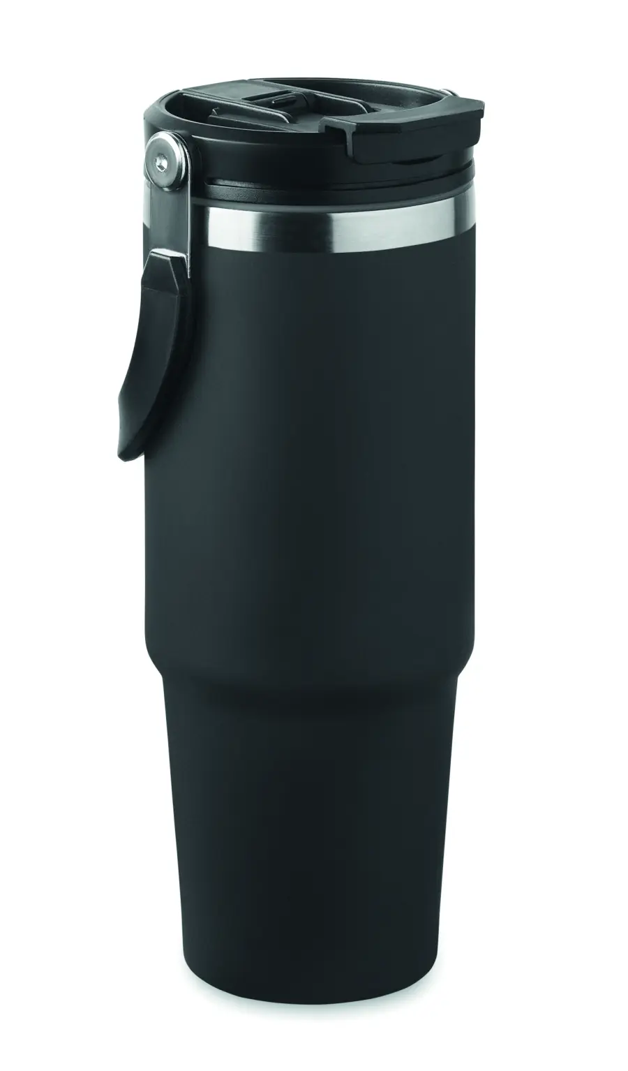 Kubek o podwójnych ściankach z recyklingowanej stali nierdzewnej (90% z recyklingowanej stali nierdzewnej i 10% ze stali nierdzewnej) z pokrywką z wewnętrzną słomką, składanym ustnikiem i otworem do bezpośredniego picia. Pojemność 850 ml.