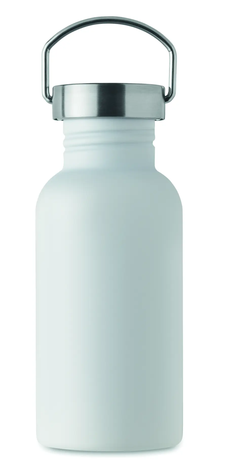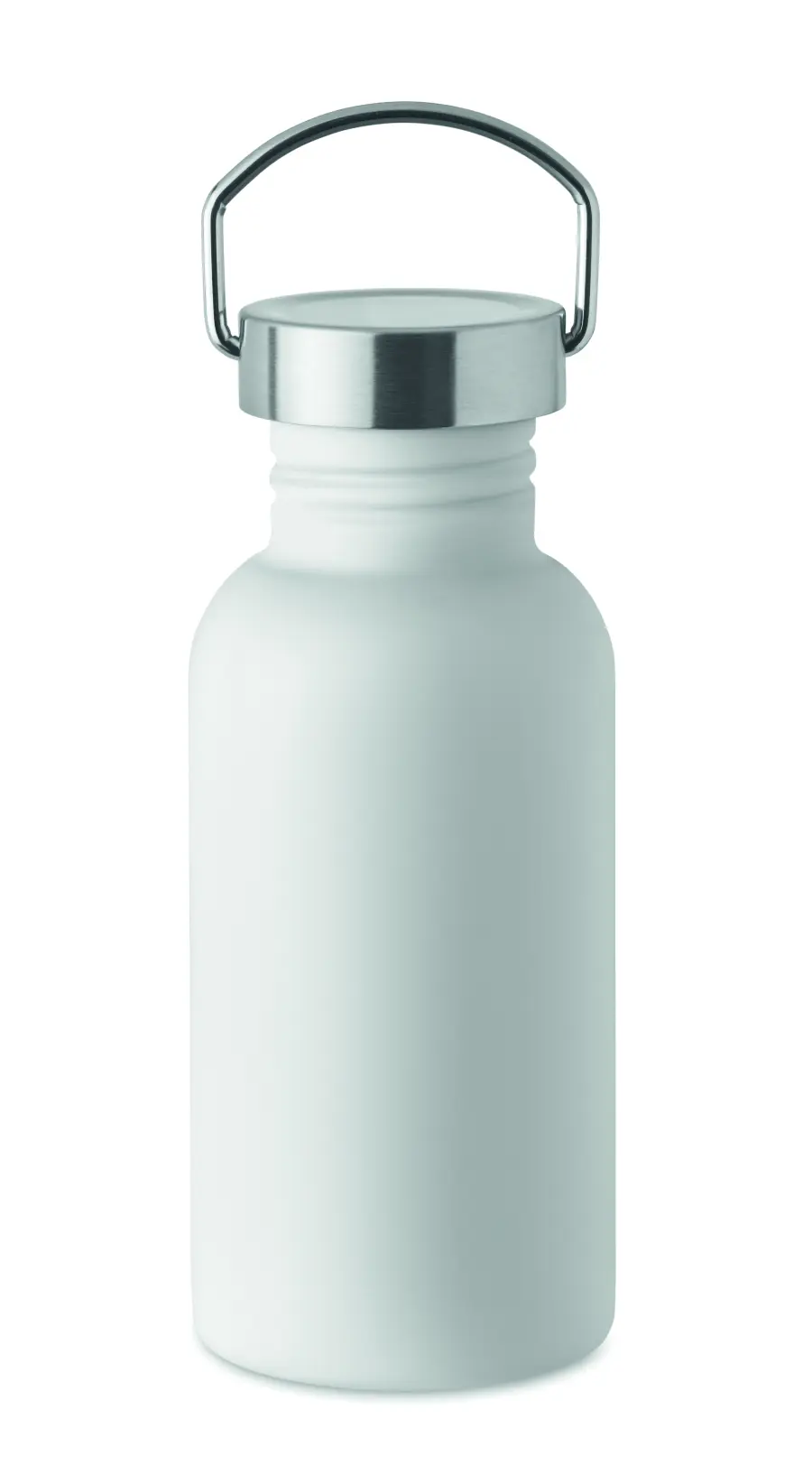 Jednościenna butelka z recyklingowanej stali nierdzewnej (90% stali nierdzewnej z recyklingu i 10% stali nierdzewnej) z pokrywką i uchwytem. Nie przecieka. Pojemność: 500 ml. Ponieważ jest to butelka z pojedynczą ścianką, może dochodzić do wymiany ciepła.