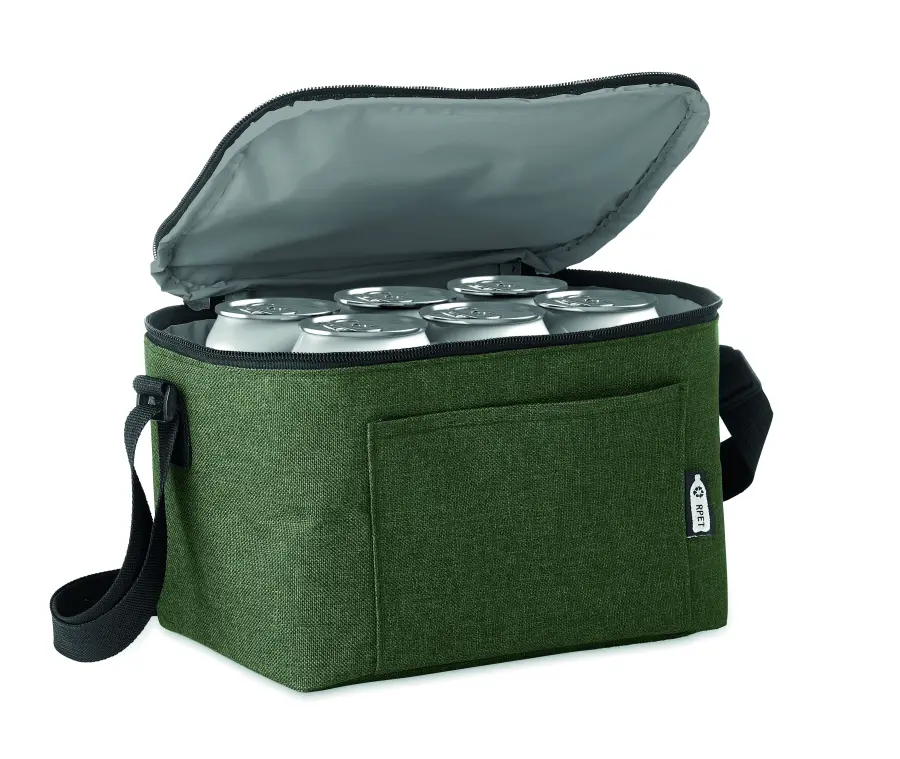 Torba termoizolacyjna na 6 puszek w 2 odcieniach 600D RPET z przednią kieszenią. Materiał izolacyjny: PEVA 0,15 mm + pianka 3 mm.