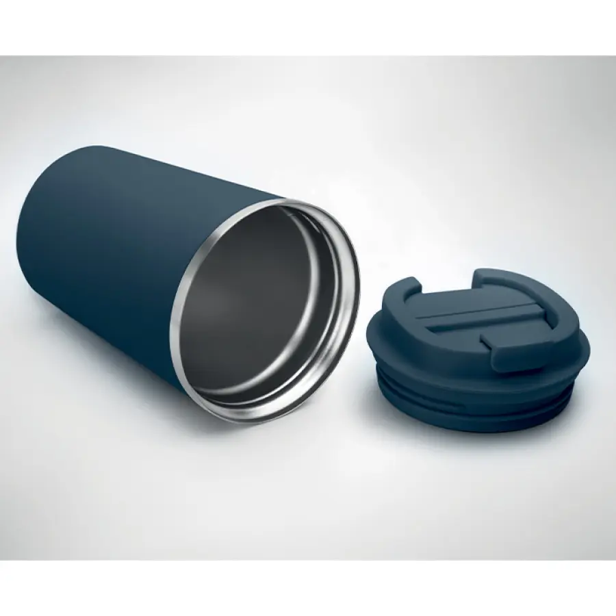 Dwuścienny kubek ze stali nierdzewnej z pokrywką z PP. Pojemność: 350 ml. Szczelny.