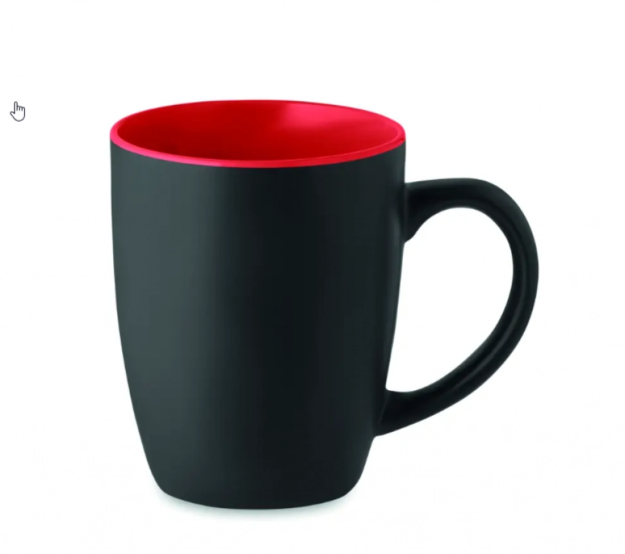 Czarny, matowy kubek ceramiczny z błyszczącym wnętrzem. Pojemność: 290 ml. Ze specjalną powłoką do grawerowania laserowego