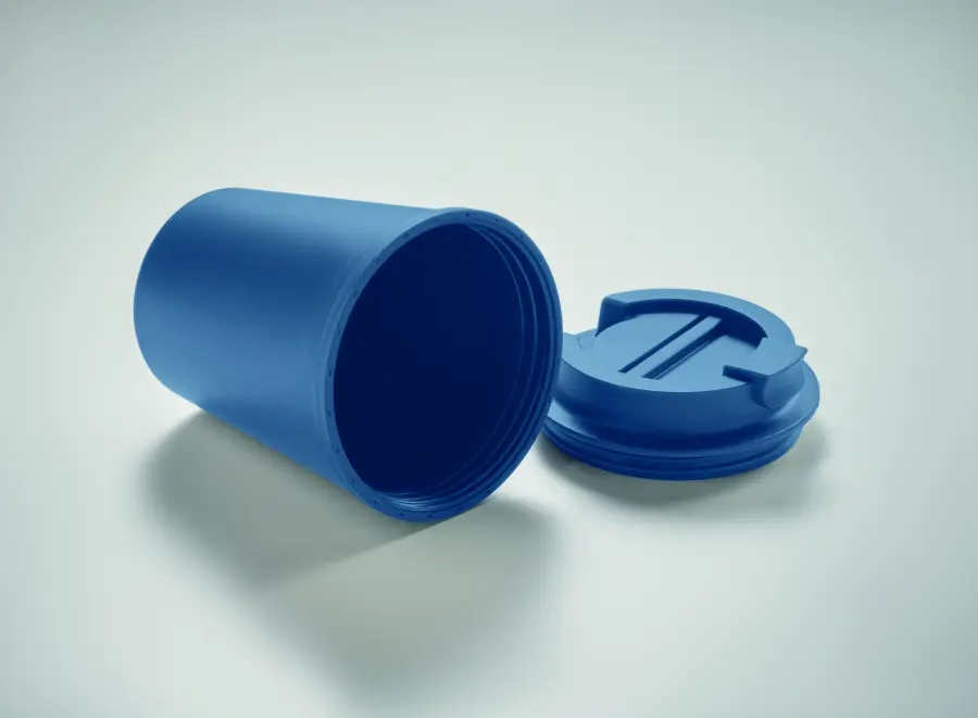 Dwuwarstwowy kubek wykonany z PP pochodzącego. Pojemność: 300 ml.