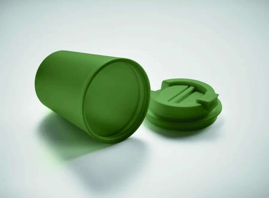 Dwuwarstwowy kubek wykonany z PP pochodzącego. Pojemność: 300 ml.