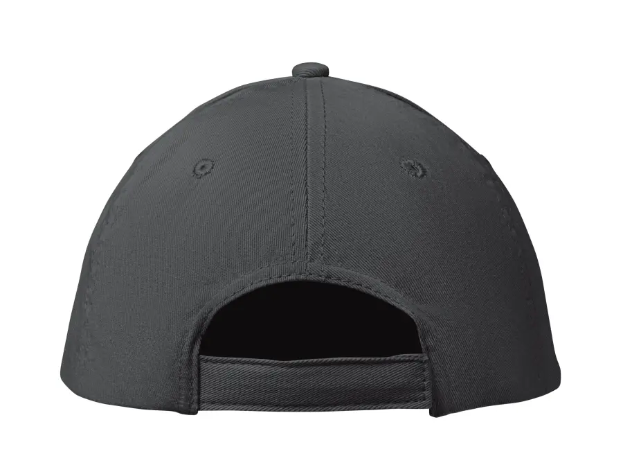 6-panelowa czapka bejsbolówka z bawełny twill 160 gr/m2 z regulowanym zapięciem na rzep. Dziurki wentylacyjne obszyte w dopasowanym kolorze. Rozmiar: 7 1/4.