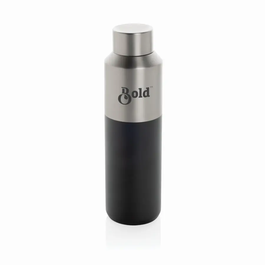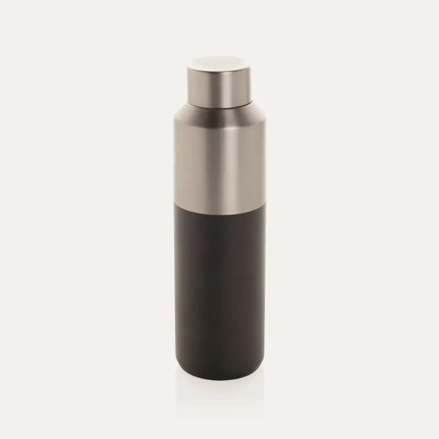 Butelka termiczna 600 ml, wykonana z materiałów z recyklingu z certyfikatem RCS, podwójne ścianki ze stali nierdzewnej z próżnią pomiędzy, utrzymuje temperaturę napojów gorących do 5 godzin i zimnych do 15 godzin
