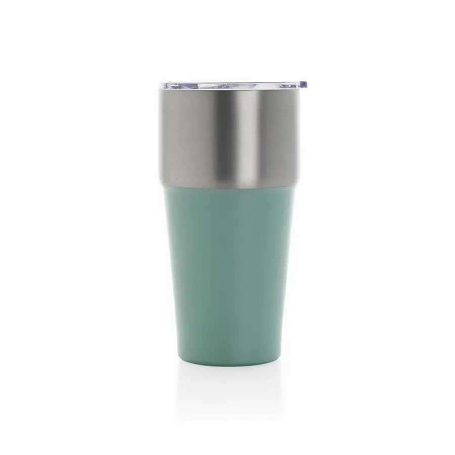 Kubek termiczny 500 ml, wykonany z materiałów z recyklingu z certyfikatem RCS, podwójne ścianki z próżnią pomiędzy, utrzymuje temperaturę napojów ciepłych do 5 godzin i zimnych do 15 godzin, wyłącznie mycie ręczne, całkowita zawartość materiałów z recyklingu obliczona na podstawie wagi całkowitej produktu: 81%