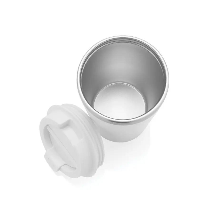 Kubek termiczny 350 ml, utrzymuje temperaturę napojów ciepłych do 2 godzin, produkt zawiera 36% PP z recyklingu z certyfikatem RCS, certyfikowany przez CONTROL UNION
