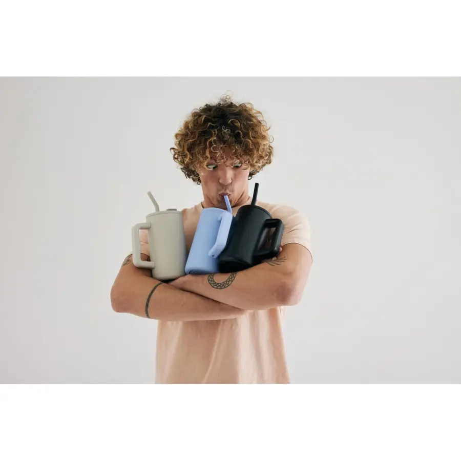 Kubek termiczny 800 ml, posiada słomkę z silikonową nakładką, zakręcane wieczko, wykonany ze stali nierdzewnej z recyklingu, podwójne ścianki ze stali nierdzewnej z próżnią między ściankami, dzięki czemu zachowuje funkcje termosu i długo utrzymuje temperaturę nie oddając jej na zewnątrz, zalecane mycie ręczne