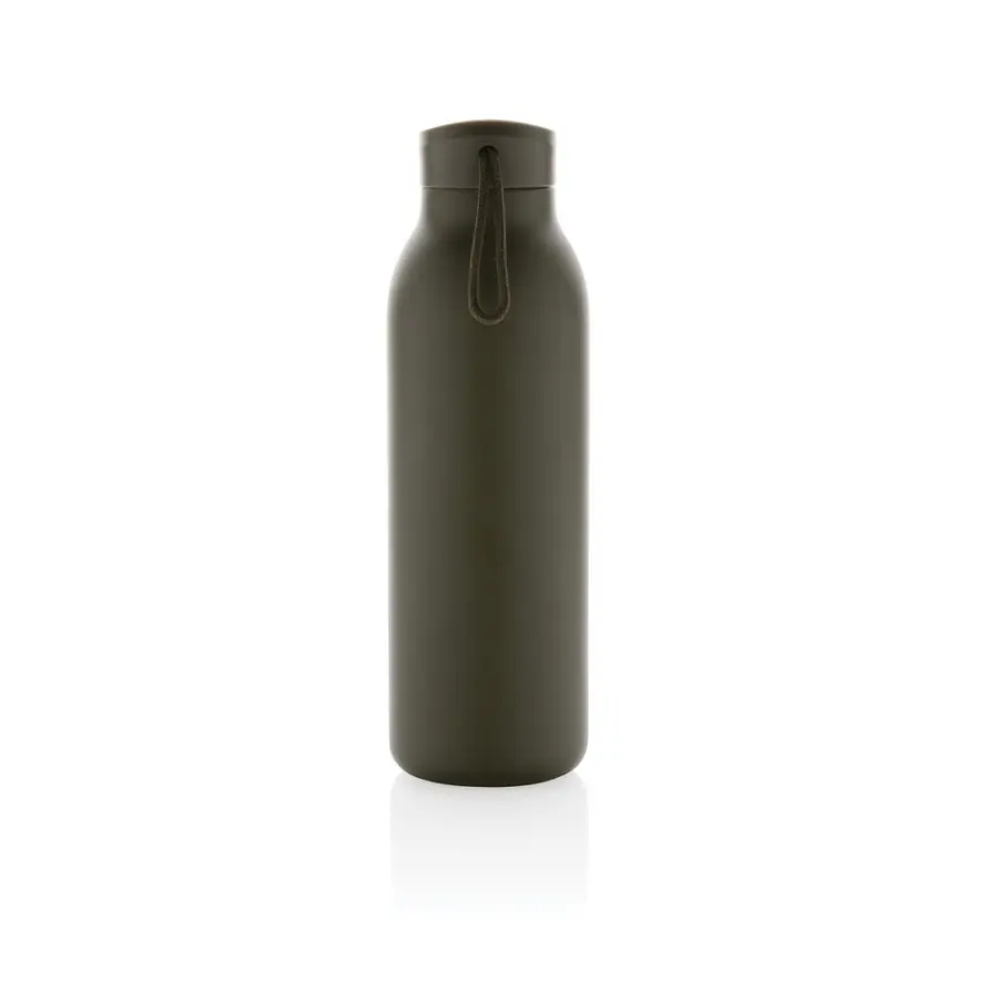 Butelka termiczna 500 ml, podwójne ścianki ze stali nierdzewnej z recyklingu z próżnią pomiędzy, zawartość materiałów z recyklingu obliczona na podstawie wagi całkowitej przedmiotu: 97%, utrzymuje temperaturę napojów ciepłych do 10 godzin oraz zimnych do 20 godzin, pasuje do większości uchwytów samochodowych, w pudełku z certyfikatem FSC®, ślad węglowy produktu: 1,35 kg CO2