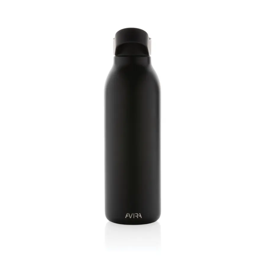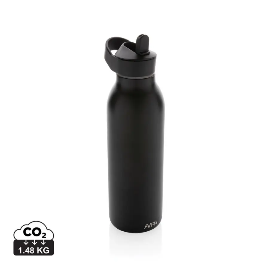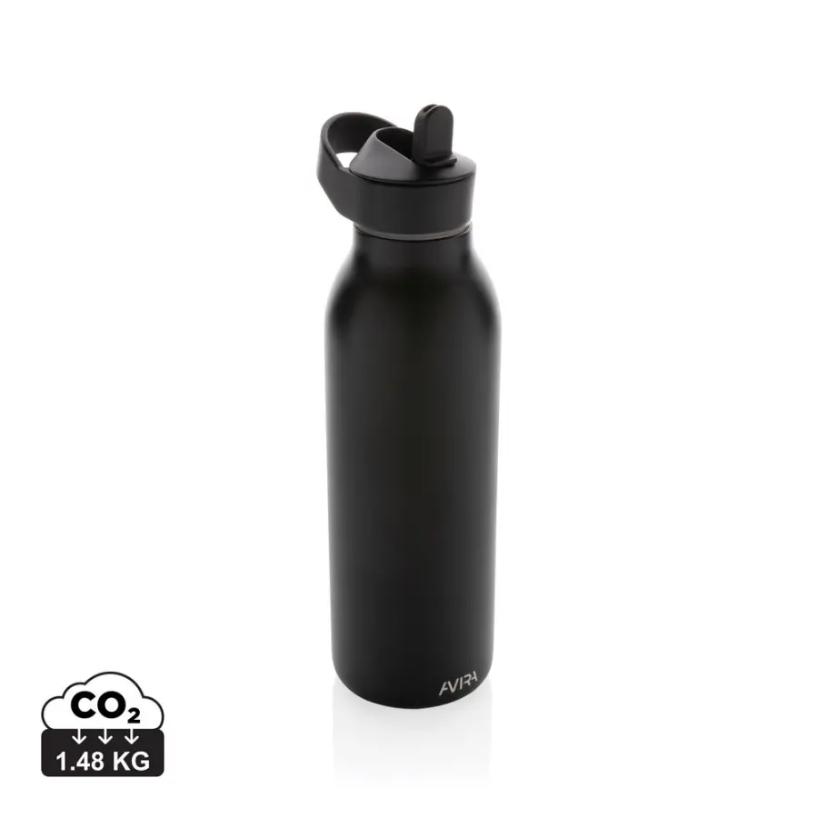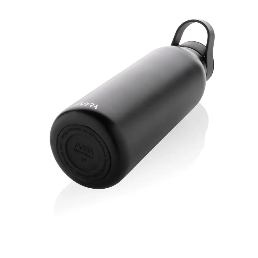 Butelka termiczna 500 ml, wykonana ze stali nierdzewnej pochodzącej z recyklingu, całkowita zawartość materiałów z recyklingu obliczona na podstawie wagi całkowitej przedmiotu: 96%, podwójne ścianki z próżnią pomiędzy, utrzymuje temperaturę napojów zimnych do 20 godzin, pasuje do większości uchwytów samochodowych, w pudełku z papieru kraftowego z certyfikatem FSC®, pudełko można wykorzystać jako stojak na telefon lub doniczkę, w pudełku z papieru kraftowego z certyfikatem FSC®, ślad węglowy produktu: 1,48 kg CO2