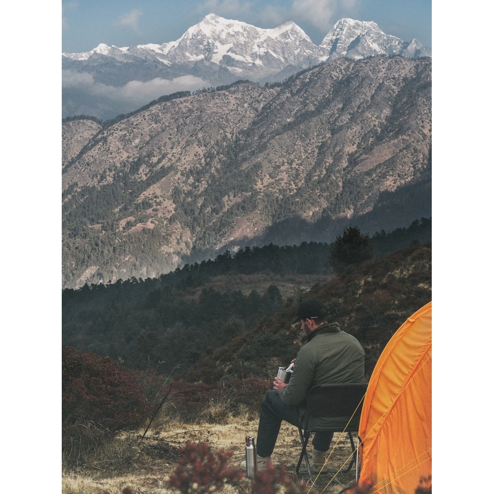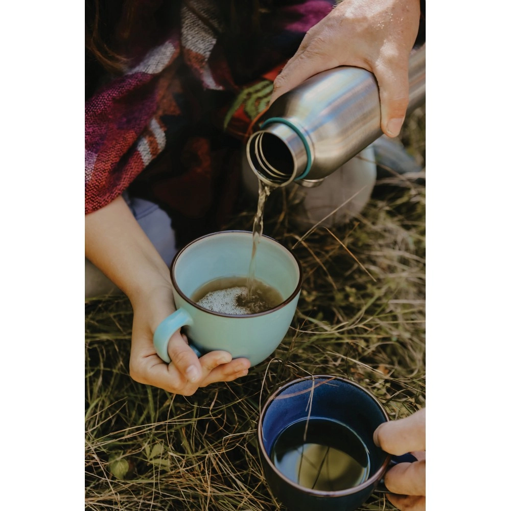 Butelka termiczna 750 ml z uchwytem, szczelna, podwójne ścianki ze stali nierdzewnej z próżnią pomiędzy, nadaje się do zimnych i gorących napojów, klasa termiczna: C
