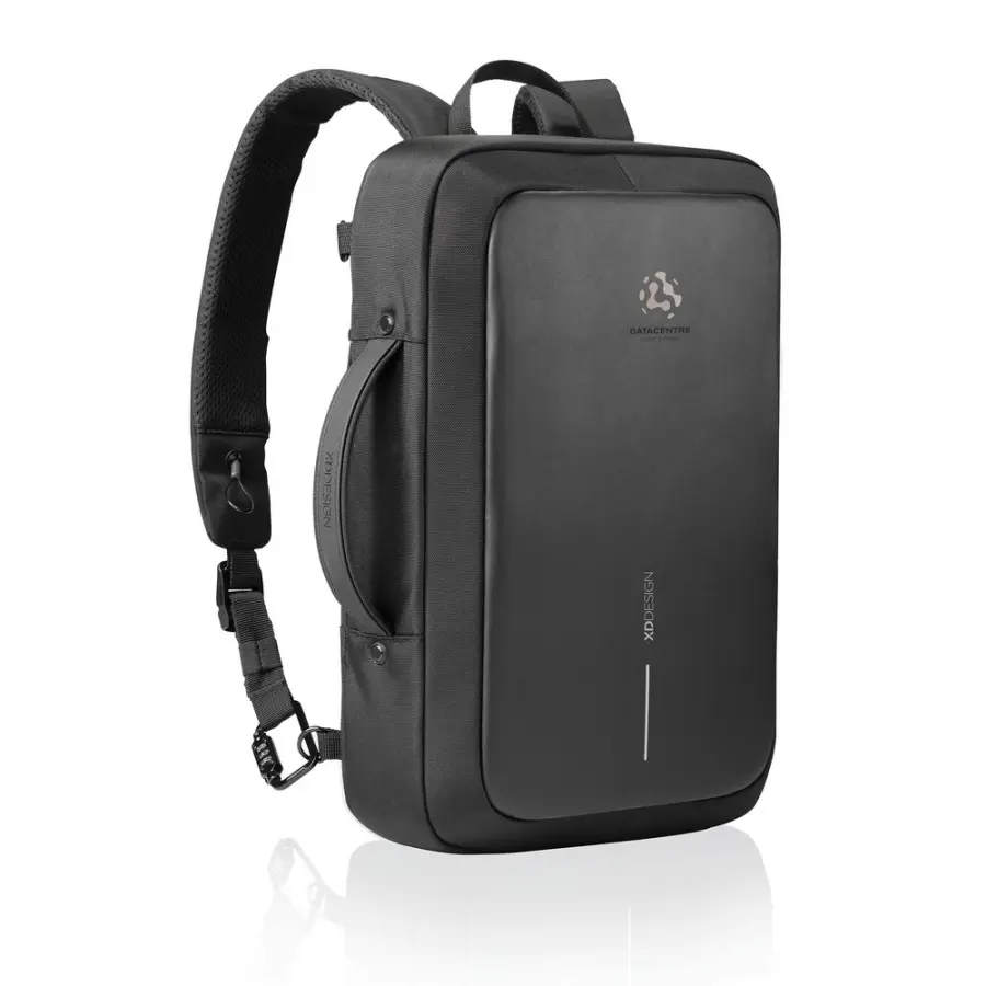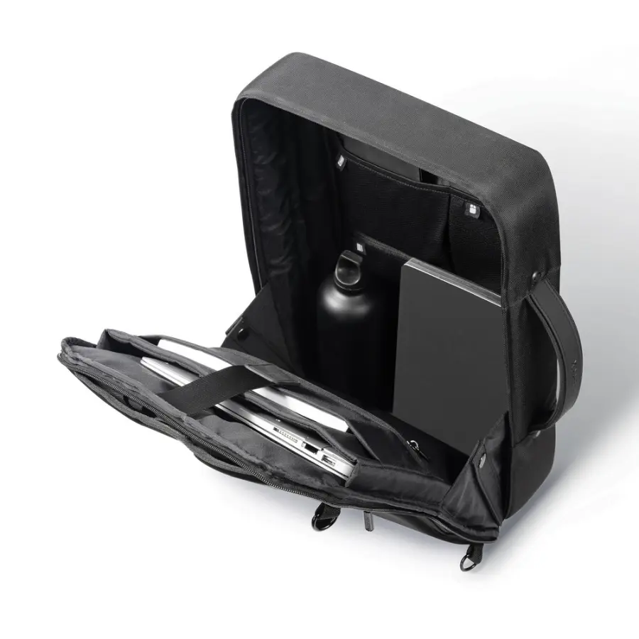 Plecak na laptopa 16”, torba, ukryte kieszenie wewnątrz, przegroda na tablet do 12,9”, wykonany z materiału odpornego na przecięcie, metalowa rama wewnątrz, kieszeń z ochroną RFID, przestronna przegroda główna, zintegrowana kłódka, posiada znacznik AWARE™, który gwarantuje, że wykorzystane materiały pochodzą z recyklingu