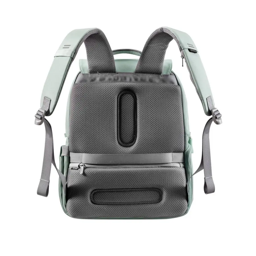 Plecak na laptopa 16”, wykonany z RPET oraz PU, klapa z systemem zamykającym Fidlock, specjalne zamki błyskawiczne zapewniające ochronę przed kieszonkowcami, kieszeń z ochroną RFID, posiada znacznik AWARE™, który jest gwarantem wykorzystania materiałów z recyklingu, ślad węglowy produktu: 8,24 kg CO2