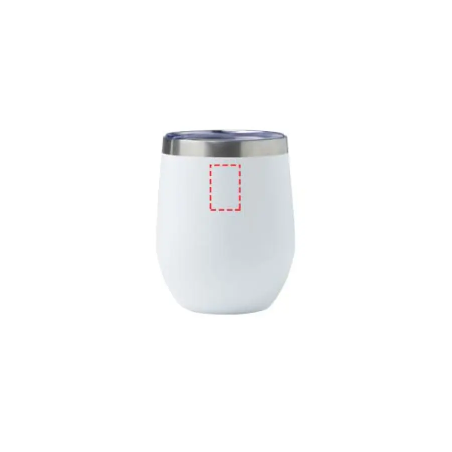 Corzo ze stali nierdzewnej z certyfikatem RCS z dwuścienną konstrukcją próżniową i miedzianą izolacją, która utrzymuje wysoką temperaturę napojów przez 6 godzin lub niską przez 24 godziny. Konstrukcja zapobiega kondensacji na zewnątrz kubka. Łatwe picie, pokrywa typu push-on. Farba proszkowa na zewnętrznej powłoce. Szeroki otwór dla wygodnego napełniania i opróżniania. Pojemność 350 ml. Zapakowana w pudełko upominkowe wykonane z kartonu z recyklingu.