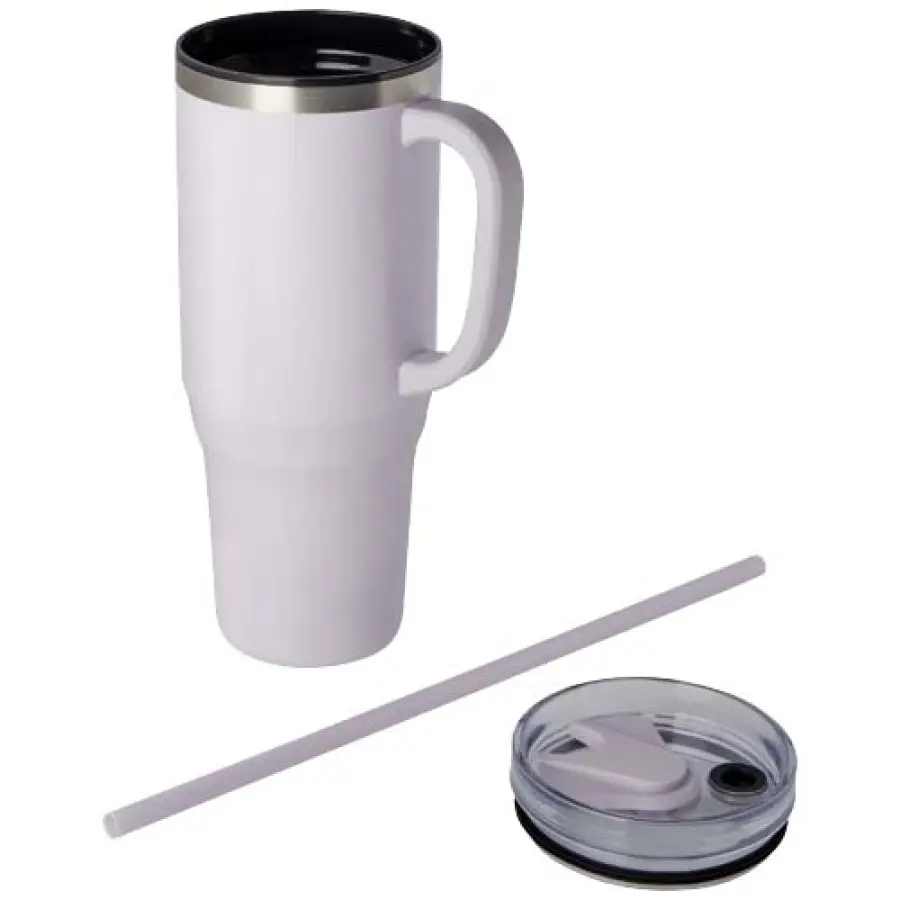 Melbourne kubek o trwałej konstrukcji z podwójnymi ściankami, dzięki czemu utrzymuje wysoką lub niską temperaturę napojów w każdym otoczeniu. Wewnętrzna ścianka kubka wykonana jest z tworzyw sztucznych pochodzących z recyklingu, a zewnętrzna ze stali nierdzewnej z certyfikatem RCS. Kubek ma pojemność 1200 ml, dzięki czemu zapewni Ci nawodnienie przez cały dzień w dobrym stylu. Posiada odporną na rozchlapywanie, wciskaną pokrywę z dwoma otworami i obrotowym zamknięciem. W zestawie słomka z recyklingu przeznaczona do kontaktu z żywnością. Tylko do mycia ręcznego.