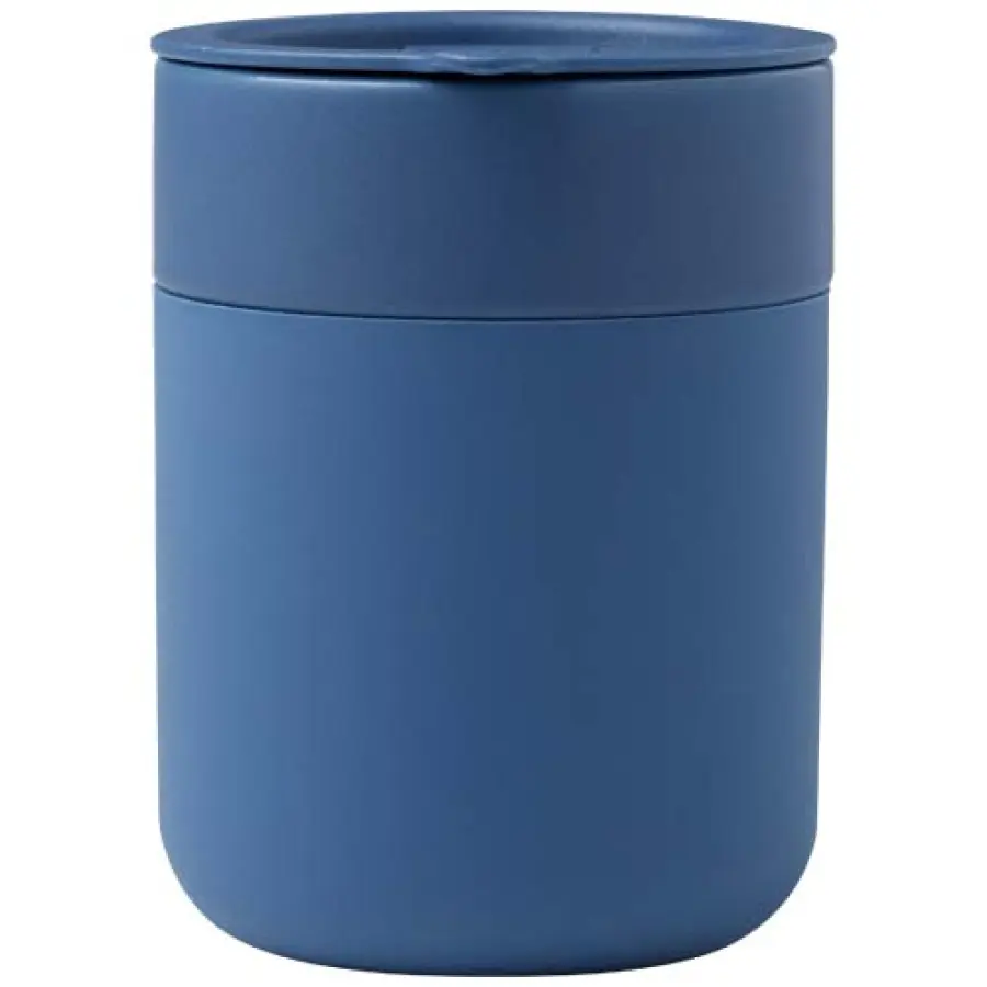 Java jednościenny kubek ceramiczny o prostej i praktycznej konstrukcji do codziennego użytku, jest wyposażony w silikonową osłonę zapewniającą wygodny chwyt. Wieczko zapobiegające rozlaniu płynu. Pojemność: 330 ml.