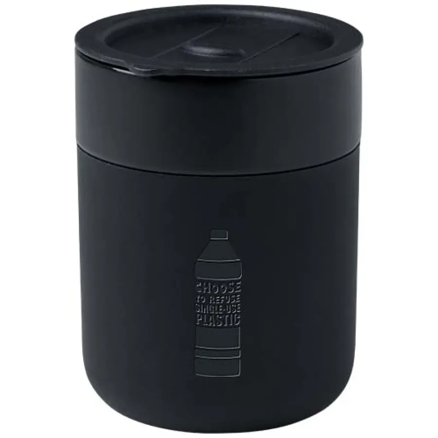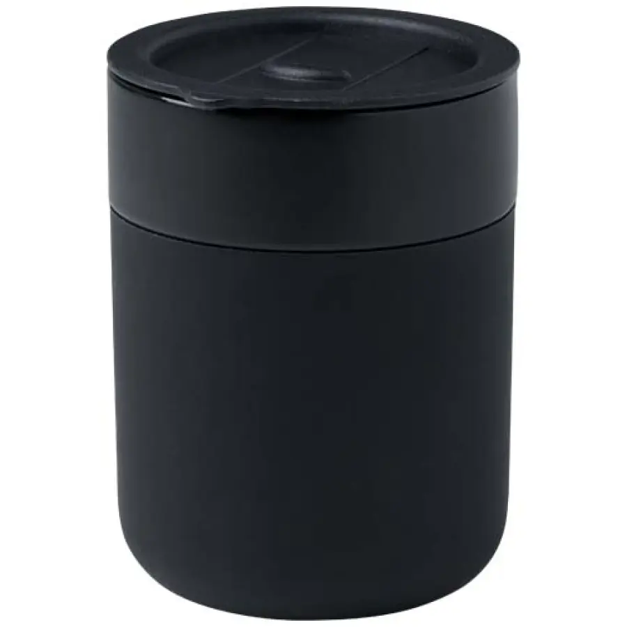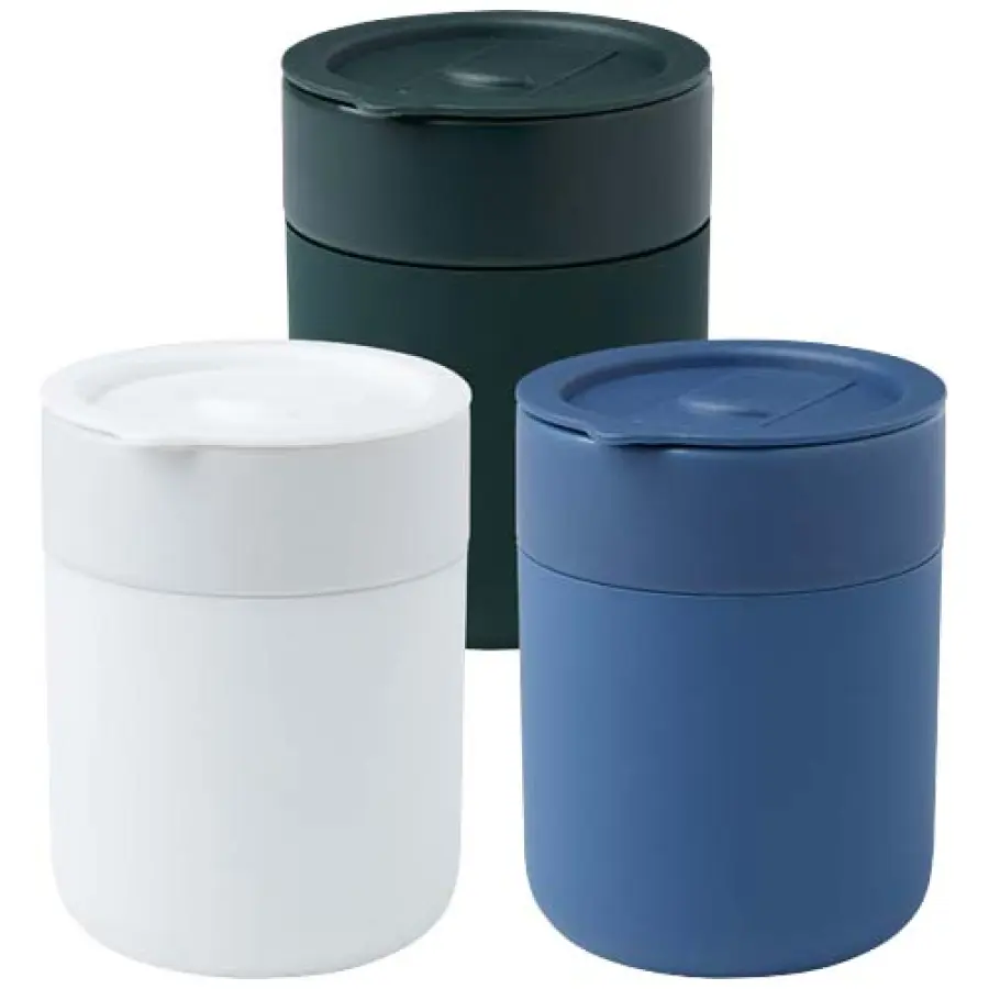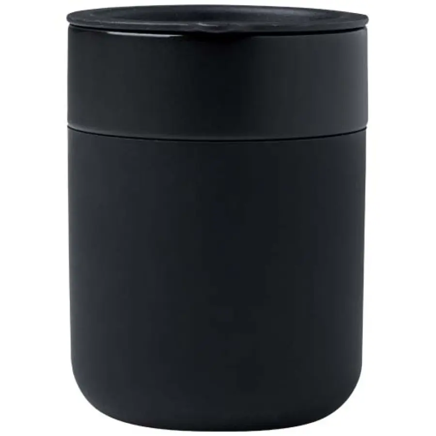 Java jednościenny kubek ceramiczny o prostej i praktycznej konstrukcji do codziennego użytku, jest wyposażony w silikonową osłonę zapewniającą wygodny chwyt. Wieczko zapobiegające rozlaniu płynu. Pojemność: 330 ml.
