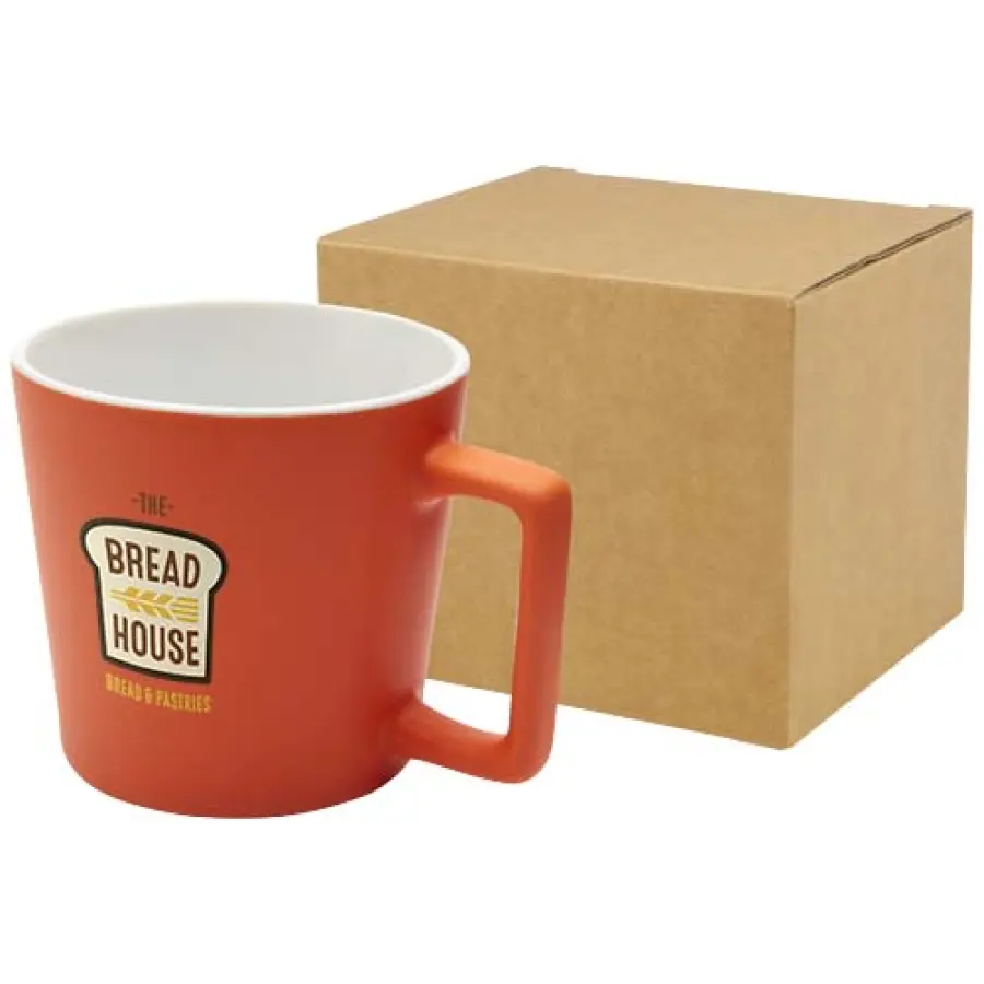 Ceramiczny kubek o nowoczesnym wzornictwie i matowym wykończeniu. Pojemność 370 ml. Wszystkie ozdoby nadają się do mycia w zmywarce. Zapakowany w kartonowe pudełko upominkowe wykonane z materiałów pochodzących z recyklingu.