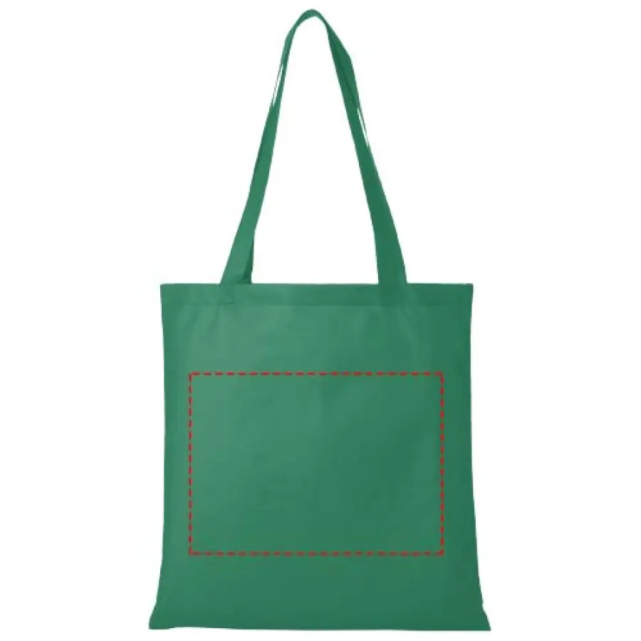 Potrzebujesz dobrej torby na każde targi lub konferencję? Duża torba z włókniny Zeus to doskonała opcja. Jej smukły design sprawia, że jest to model elegancki i odpowiedni do przenoszenia lekkich przedmiotów, takich jak notatnik i długopis. Rączki mają długość 29 cm, dzięki czemu można ją łatwo przewiesić przez ramię.