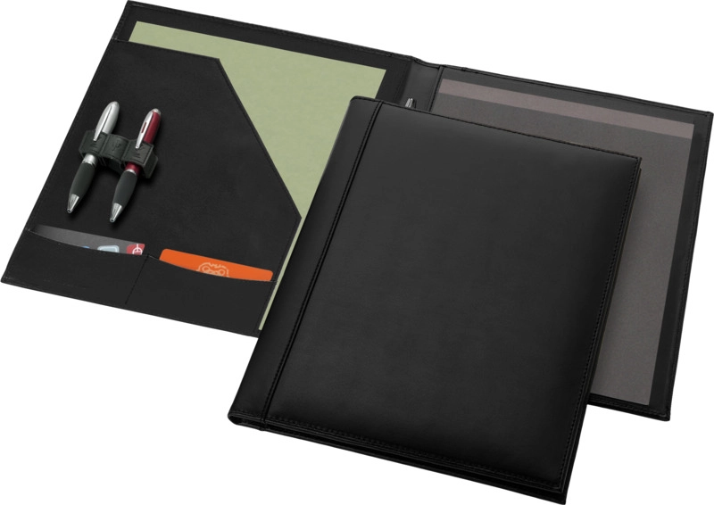 Skórzane portfolio A4 Harvard. Unikalne portfolio z pętelką na długopis oraz kilkoma kieszeniami do przechowywania dokumentów. Zawiera notesik 20-kartkowy w linie. Zapakowane w pudełko upominkowe Avenue. Nie zawiera akcesoriów. Dwoina.