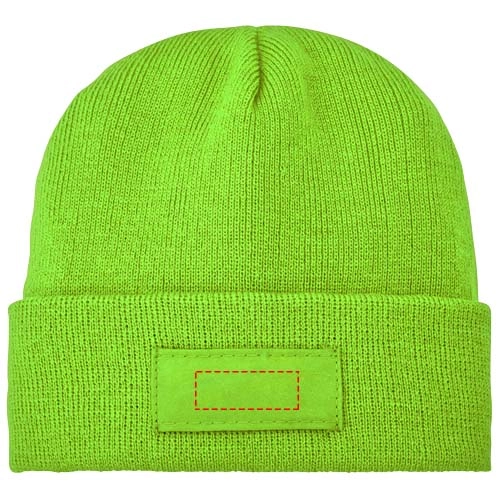 Czapka jednowarstwowa z dwukrotnie wywiniętym brzegiem. Naszywka na branding.
