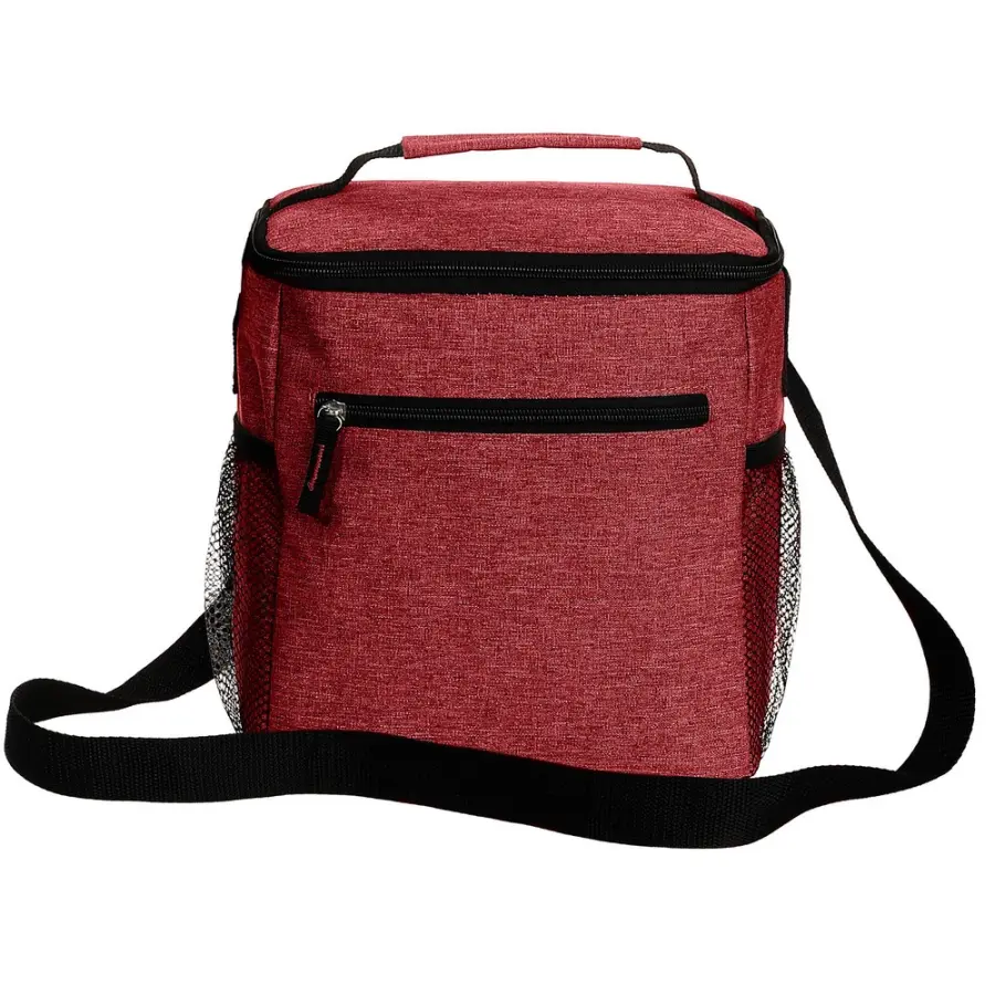 Torba termoizolacyjna, przegroda główna i przednia kieszeń zamykane na zamek błyskawiczny, 2 boczne kieszenie siateczkowe, uchwyt do noszenia oraz regulowany pasek na ramię