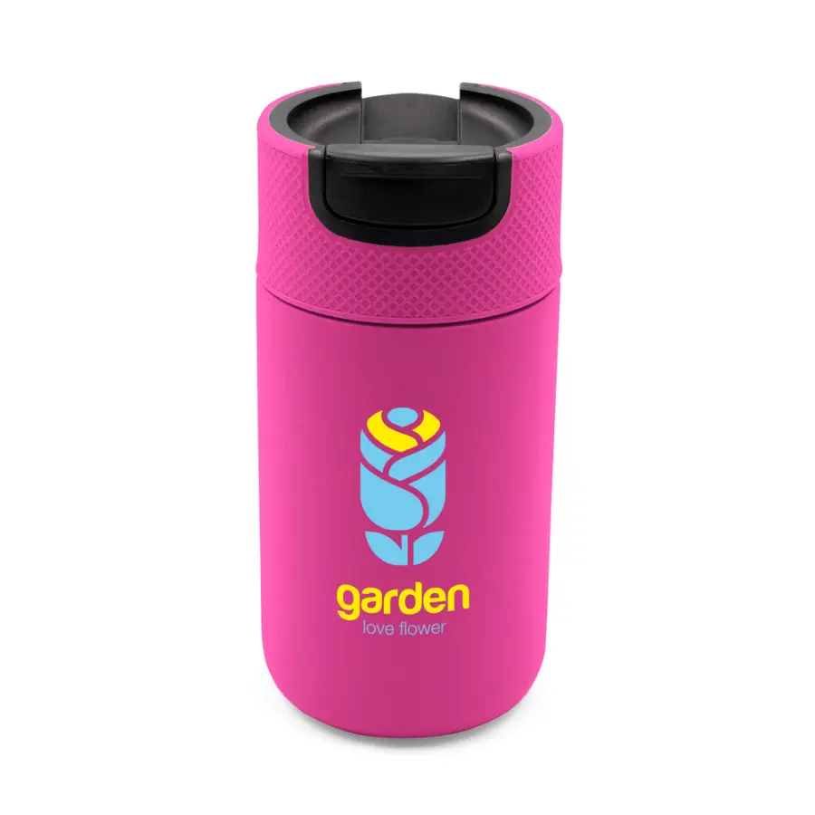 Kubek termiczny 400 ml Air Gifts, posiada podwójne ścianki ze stali nierdzewnej z próżnią między ściankami, co spowalnia oddawanie temperatury na zewnątrz, zachowując funkcje termosu, plastikowe wieczko z zamknięciem umożliwiającym obsługę jedną ręką, matowe wykończenie, utrzymuje temperaturę napojów gorących do 10 godzin +leakproof