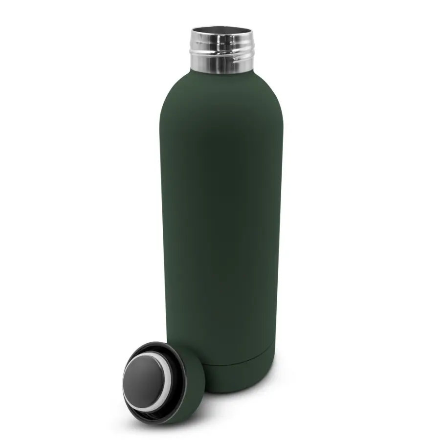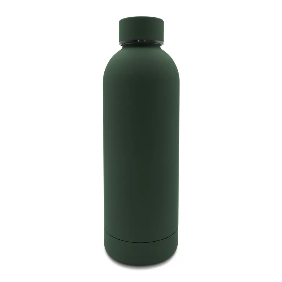 Butelka termiczna 500 ml, podwójne ścianki ze stali nierdzewnej z próżnią między ściankami dzięki czemu zachowuje funkcje termosu i długo utrzymuje temperaturę nie oddając jej na zewnątrz, gumowane wykończenie soft-touch, utrzymuje temperaturę napojów gorących do 20 godzin +leakproof