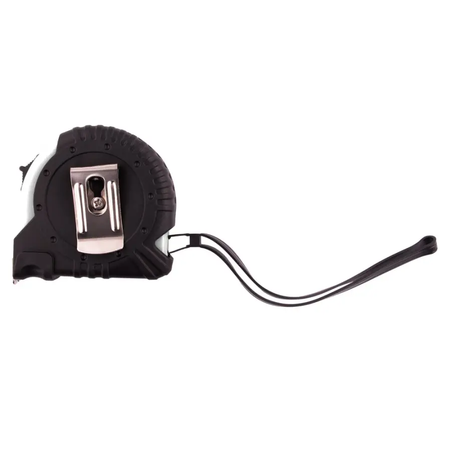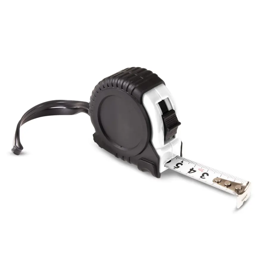 Miara 3 m z uchwytem ułatwiającym noszenie, klipem umożliwiającym przypięcie np. do paska, mechanizmem blokującym, korpusem pokrytym gumą, produkt wykonany z PP