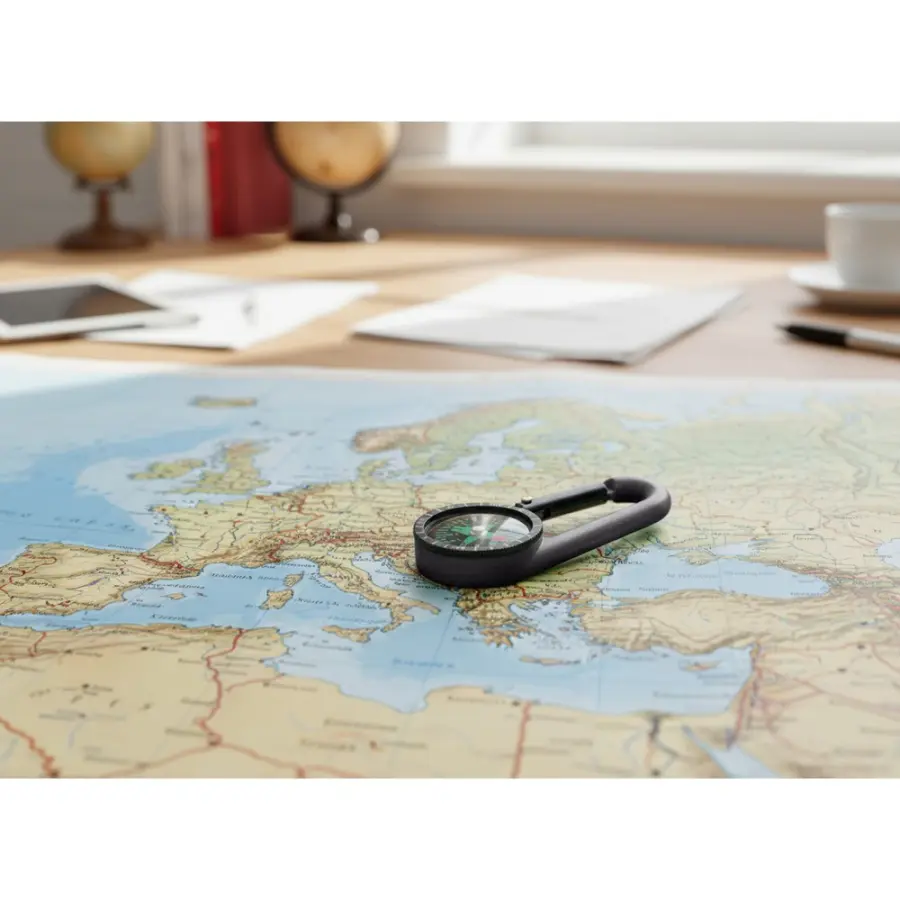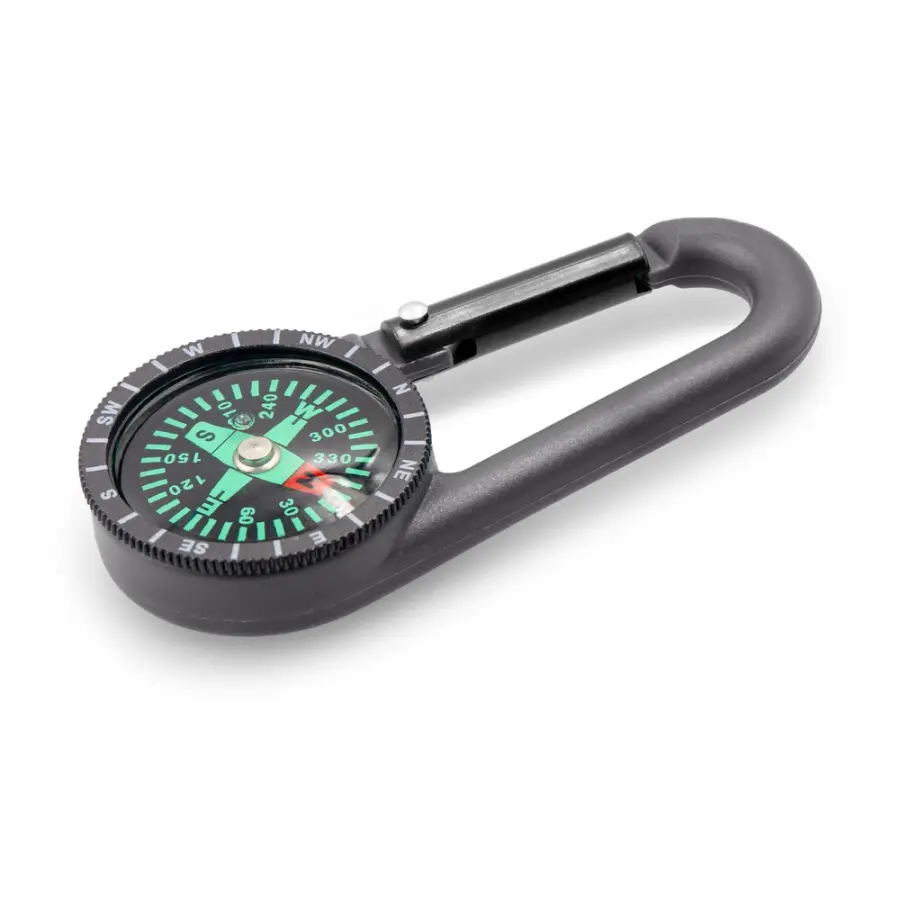 Kompas z karabińczykiem umożliwiającym przypinanie, produkt wykonany z plastiku