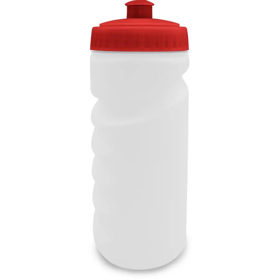 Bidon 500 ml z kolorową zakrętką, posiada zamknięcie w postaci dzióbka ułatwiającego picie oraz profilowanie, dzięki któremu bidon lepiej leży w dłoni, produkt wykonany z PE i PP