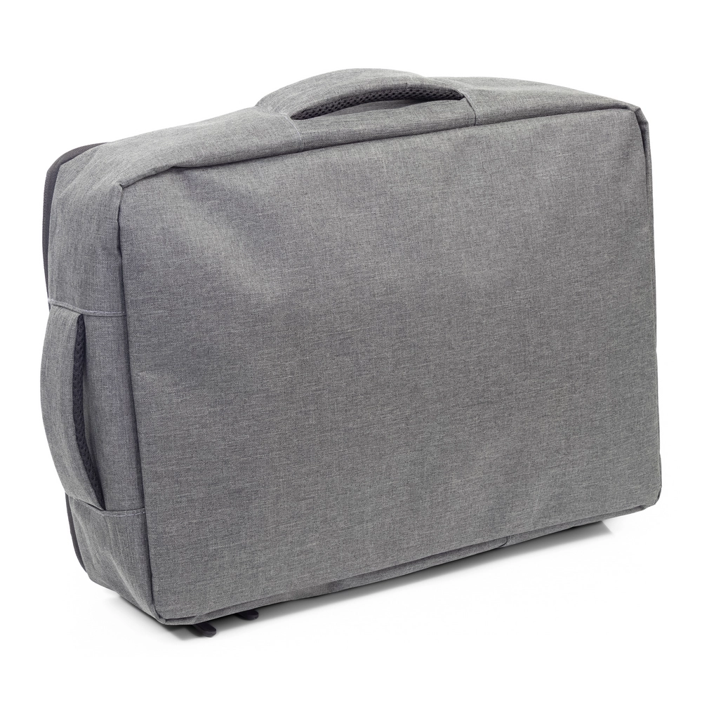 Plecak na laptopa 15,6" z bocznym uchwytem umożliwiającym funkcjonowanie jako torba na laptopa, zapinana główna przegroda z miękką kieszenią na laptopa lub dokumenty, 2 małe kieszenie oraz 2 szlufki na długopisy, zamek błyskawiczny z dodatkowym pullerem ułatwiającym rozpinanie, pasek do zamocowania na torbie podróżnej, posiada regulowane paski na ramię umożliwiające dopasowanie ich długości do własnych preferencji, produkt wykonany z RPET