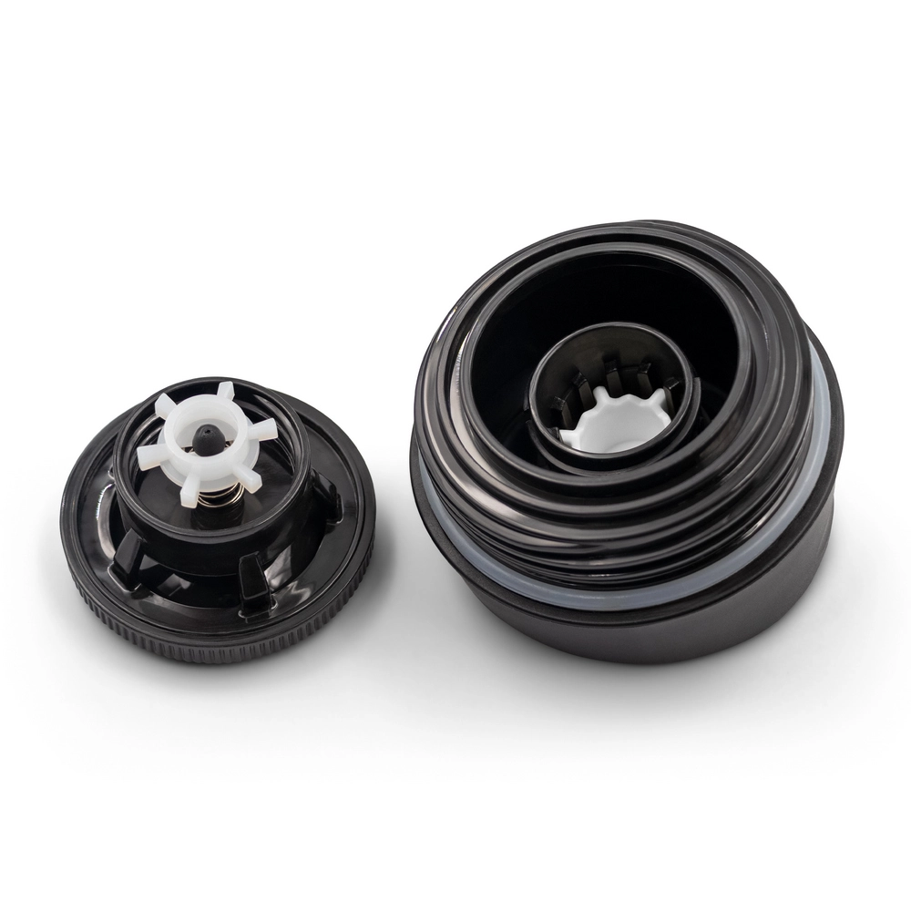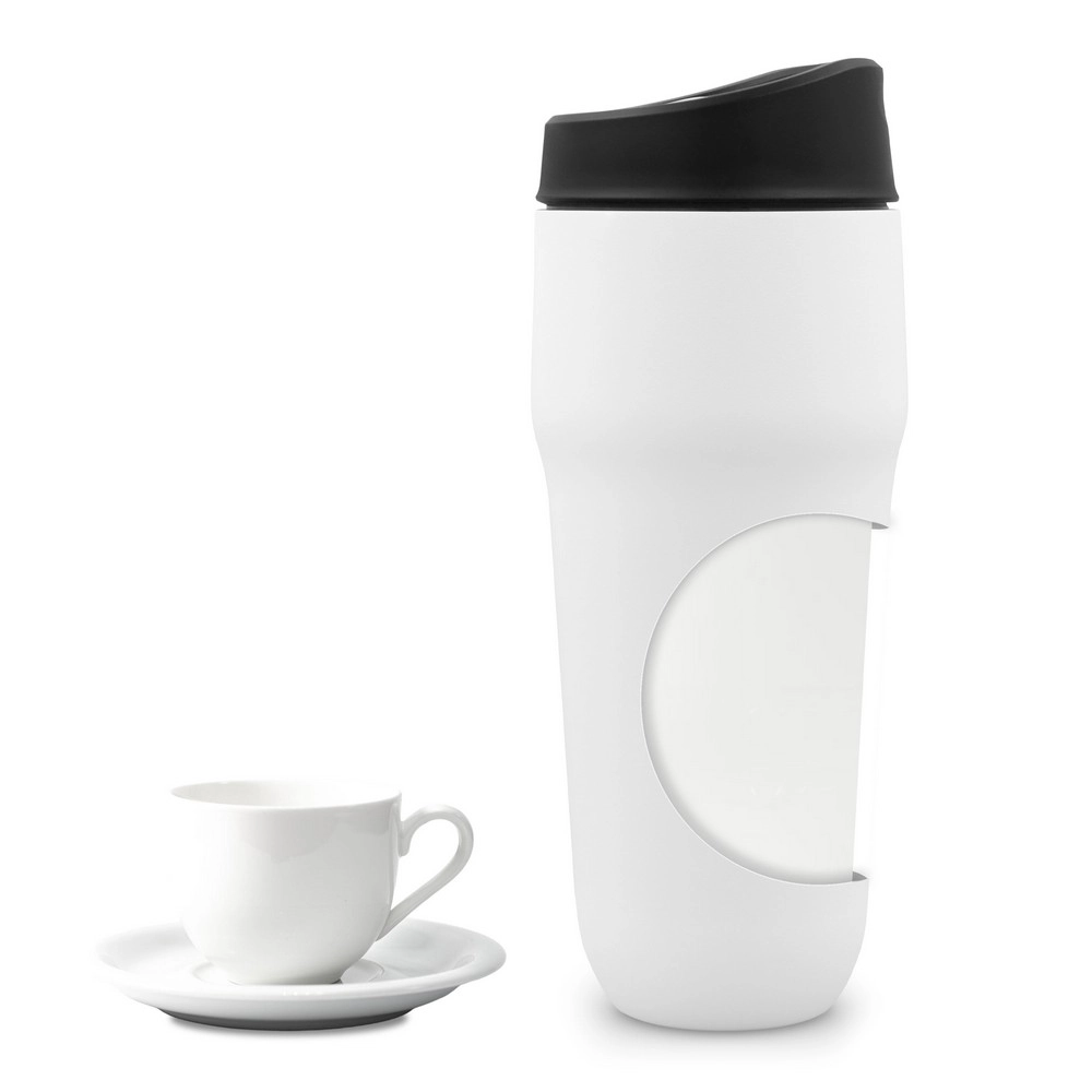 Kubek termiczny 400 ml Air Gifts, posiada podwójne ścianki ze stali nierdzewnej i ceramiki z próżnią między ściankami, co spowalnia oddawanie temperatury na zewnątrz, zachowując funkcje termosu, plastikowe wieczko z przyciskiem otwarcia/zamknięcia ustnika umożliwiającym obsługę jedną ręką, wieczko może zostać rozkręcone w celu ułatwienia czyszczenia, matowe wykończenie, produkt wykonany ze stali nierdzewnej, ceramiki i plastiku, utrzymuje temperaturę napojów gorących do 15 godzin +leakproof