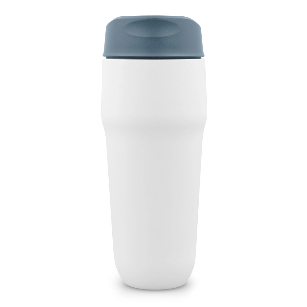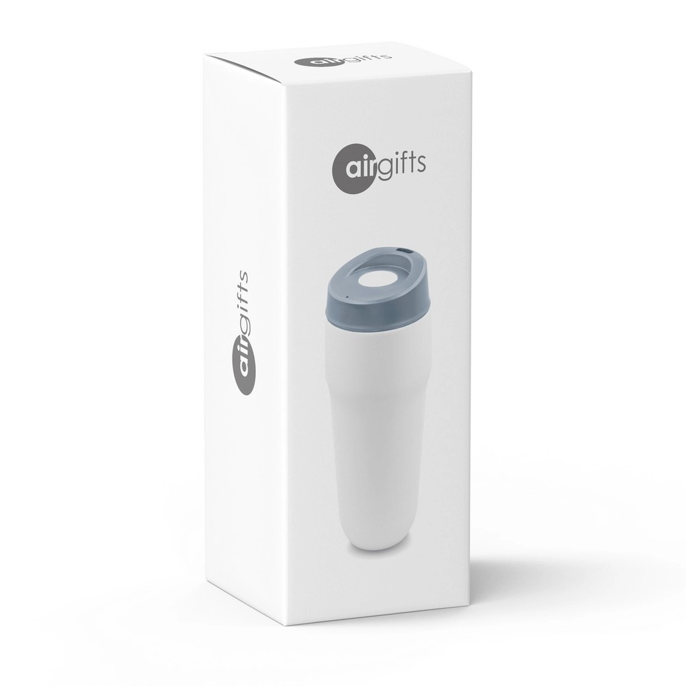 Kubek termiczny 400 ml Air Gifts, posiada podwójne ścianki ze stali nierdzewnej i ceramiki z próżnią między ściankami, co spowalnia oddawanie temperatury na zewnątrz, zachowując funkcje termosu, plastikowe wieczko z przyciskiem otwarcia/zamknięcia ustnika umożliwiającym obsługę jedną ręką, wieczko może zostać rozkręcone w celu ułatwienia czyszczenia, matowe wykończenie, produkt wykonany ze stali nierdzewnej, ceramiki i plastiku, utrzymuje temperaturę napojów gorących do 15 godzin +leakproof