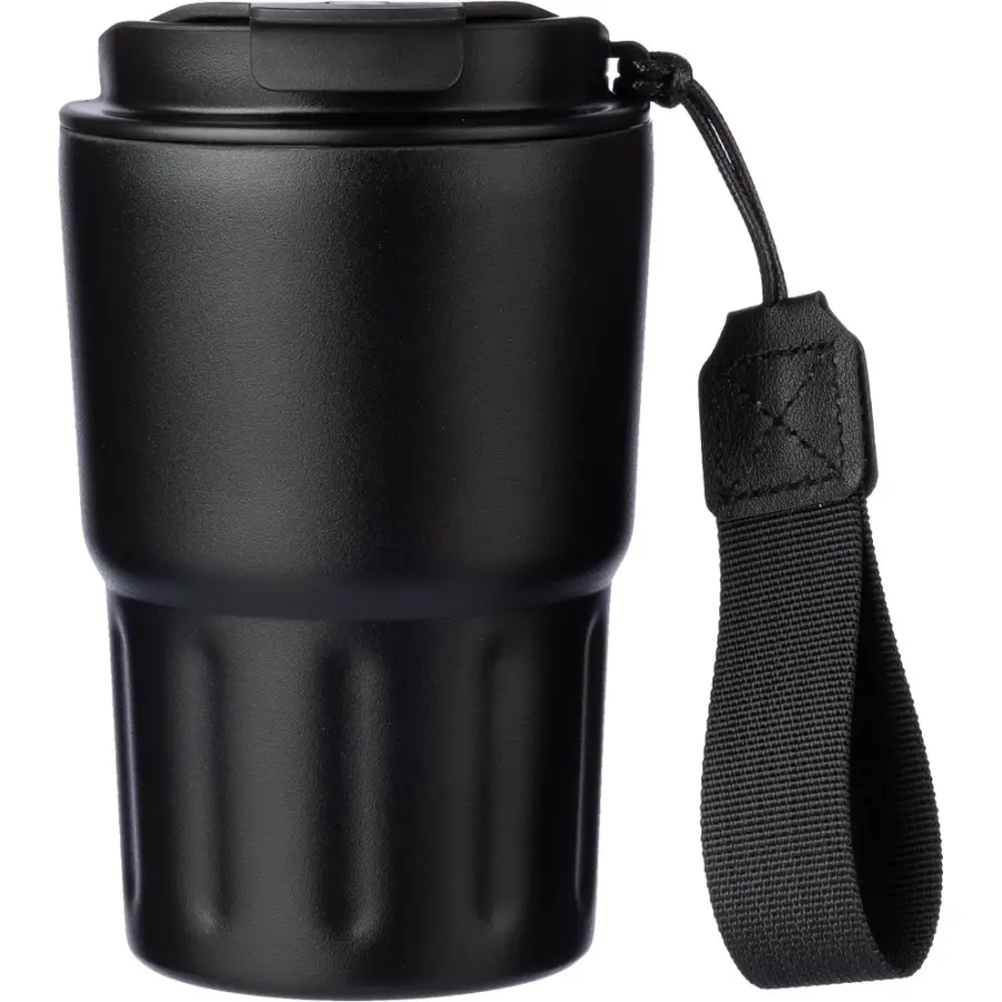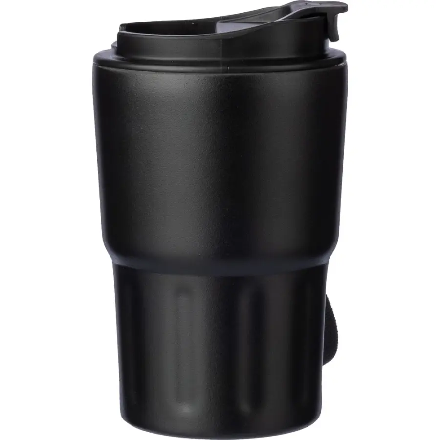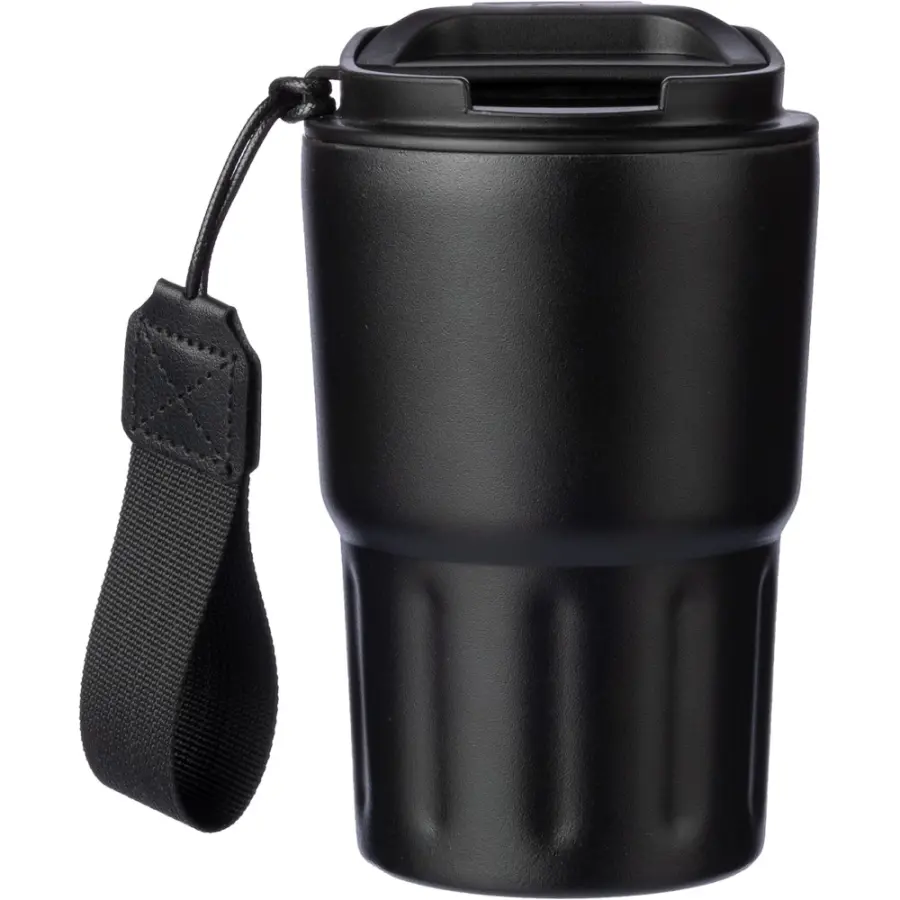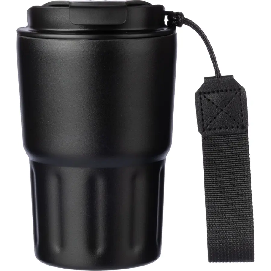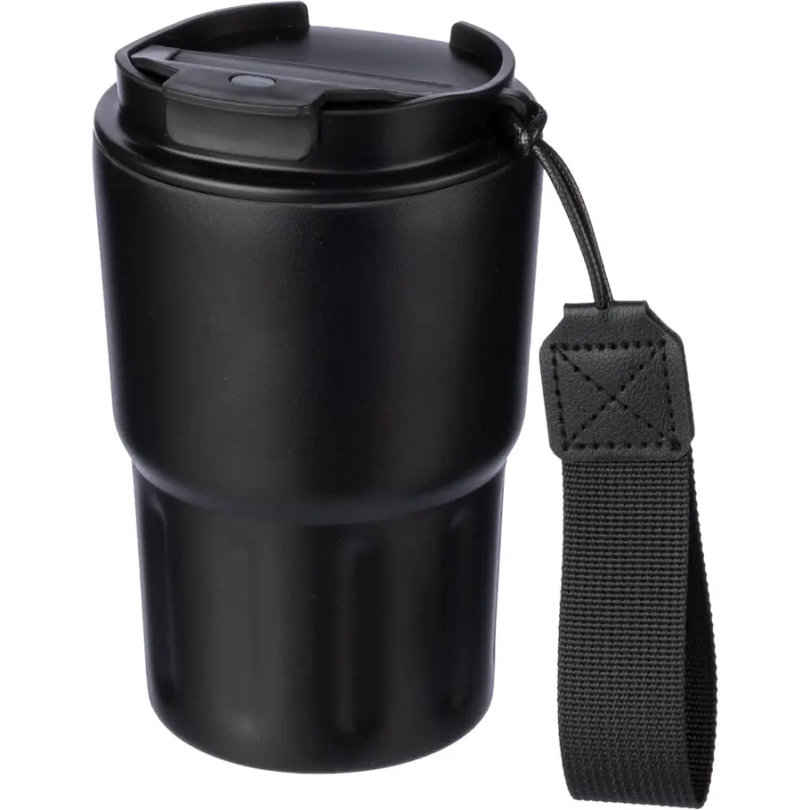 Kubek termiczny 320 ml, posiada podwójne ścianki ze stali nierdzewnej z próżnią między ściankami, co spowalnia oddawanie temperatury na zewnątrz, zachowując funkcje termosu, pasek ułatwiający noszenie lub przypięcie, plastikowe wieczko z otwarciem umożliwiającym łatwą obsługę jedną ręką, dobrze trzyma temperaturę ciepłych i zimnych napojów, utrzymuje temperaturę napojów gorących do 10 godzin +leakproof